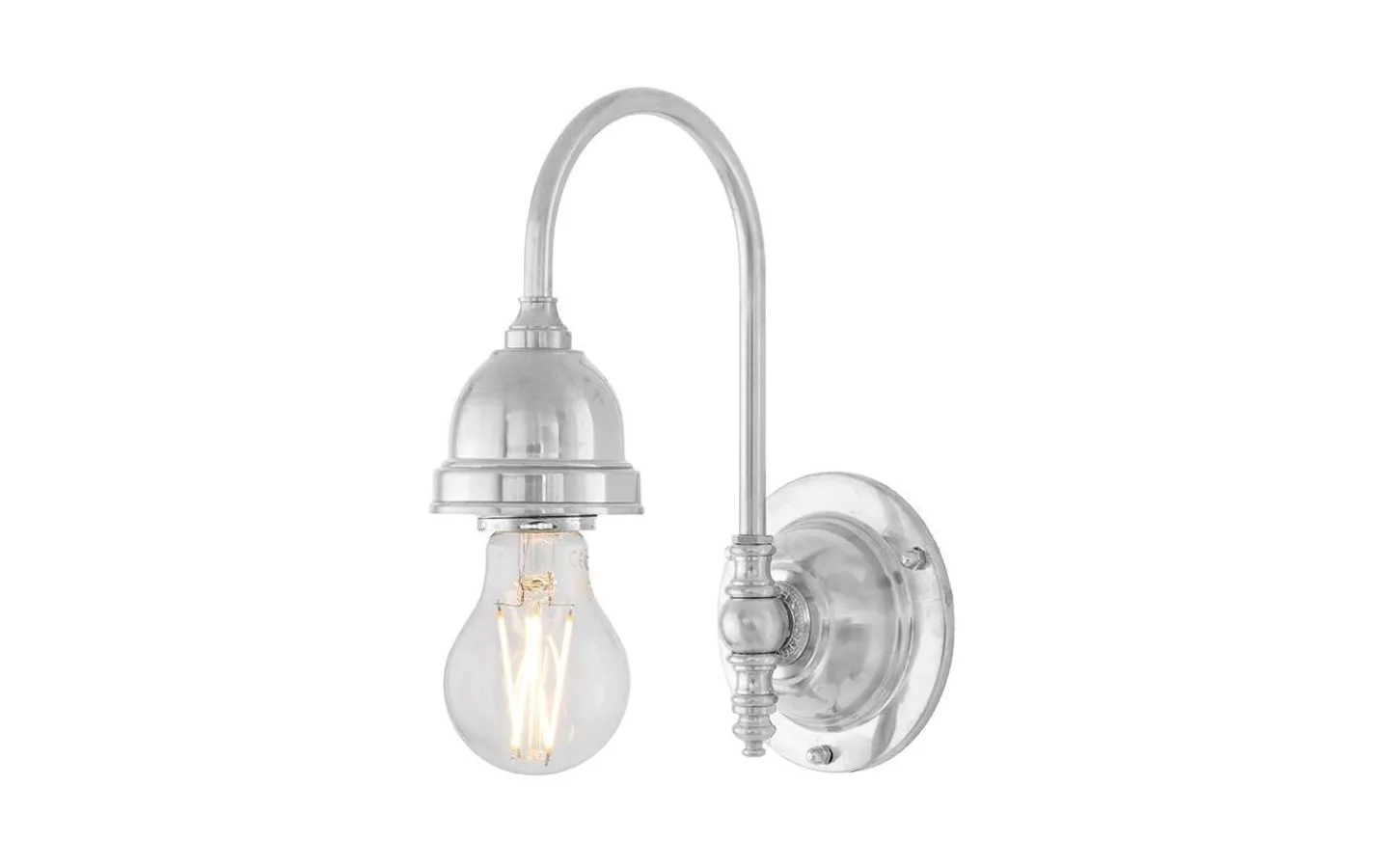 Klassisk väggarmatur för en öppen glasskärm eller alternativt textilskärm. Främst avsedd som allmän- eller stämningsbelysning i exempelvis en korridor eller sittande på var sin sida om en spegel eller tavla. Det nedre stagen kan avlägsnas om man vill montera lampan ovanför exemeplvis en spegel. För fast montage. För att gå in med kuloledning kompletteras med en distansplatta.
