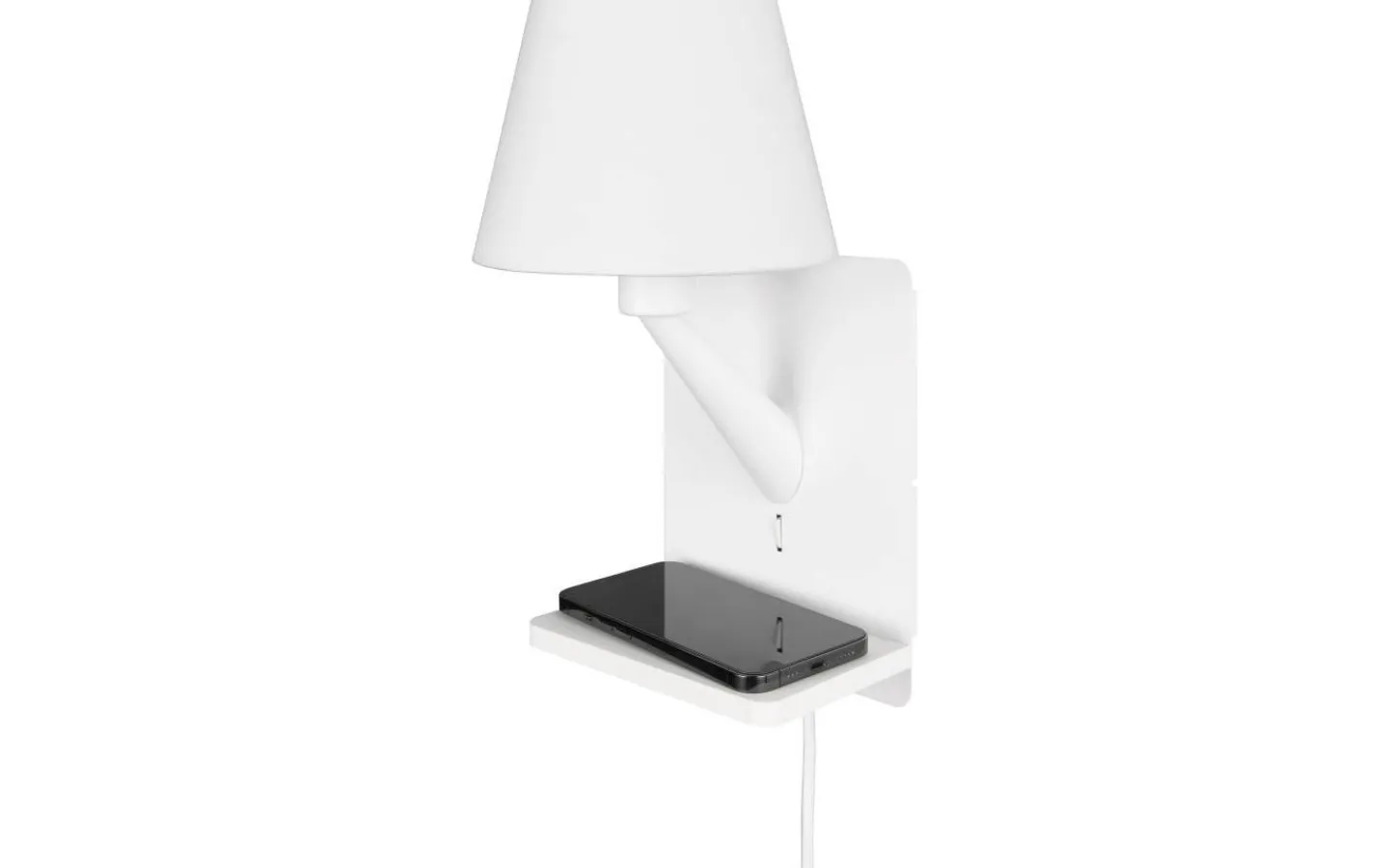 Vägglampan COMFORT kombinerar elegant design med praktisk funktionalitet. Dess tygskärm skapar inte bara ett tidlöst utseende, utan också en mysig atmosfär. Kompatibla smartphones kan enkelt laddas med den integrerade induktiva laddningsstationen. Alternativt finns en USB- och USB-C-anslutning, vilket gör lampan särskilt lämplig för sovrummet. Tack vare FLEXconnect-funktionen är vägglampan extremt flexibel att använda – den kan styras både via en strömbrytare och utan kabel via den fasta anslutningen. Den mattvita färgen ger lampan en tidlös design som kan integreras på en mängd olika sätt. Den mjuka tygskärmen ger en behaglig ljusfördelning, medan den robusta metallramen säkerställer stabilitet och hållbarhet. För modern och pålitlig belysning rekommenderas användning av en LED-lampa. Den erbjuder hög ljuskvalitet, är mångsidig och övertygar med jämn belysning. Dess långa livslängd och låga värmeutveckling gör den till det perfekta valet för en mängd olika användningsområden. Ljuskälla: exklusiv 1x E14 · max. 40W. Extra information: ,Induktiv laddningsstation,IP20,Lampa(or) ingår ej,Laddande USB-anslutning,Laddande USB-C-anslutning,Brytare,Väggmontering