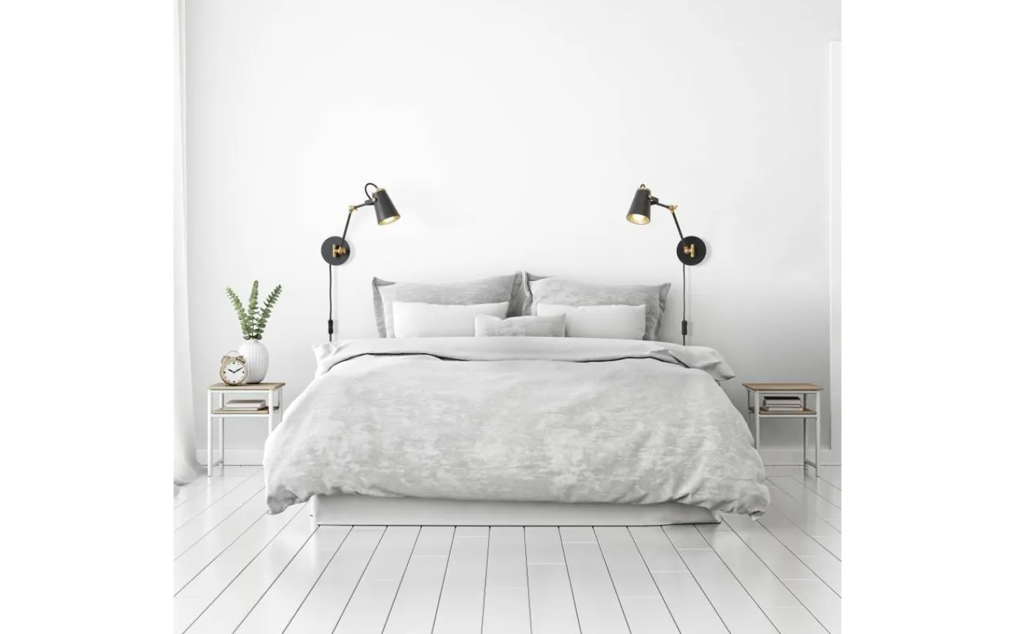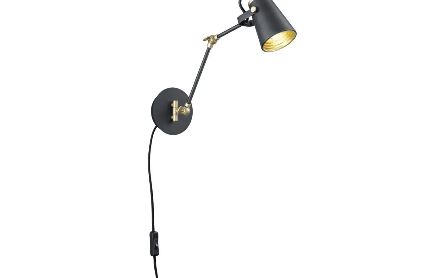 Vägglampan EDWARD har en modern och enkel design. Den lyckade designen har en särskilt dekorativ effekt på omgivningen och skapar en modern och mysig atmosfär. Dess användningsområden är mångsidiga, eftersom vägglampan har en utsprång på 50 cm och har två vridbara och vinklade leder samt ett lamphuvud som kan justeras individuellt. Detta gör EDWARD idealisk som läslampa bredvid sängen eller i läshörnan. Armaturen är också utrustad med FLEXconnect-funktionen. Det betyder att lampan kan fästas på väggen i valfritt läge som vanligt och drivas via en sladd eller anslutas direkt till den fasta uttaget utan nätkabel. I detta fall kan kabeln tas bort från armaturen. Lampan är tillverkad av metall och finns i en modern färgkombination av matt svart och guld. Kombinationen skapar eleganta ljusaccenter och ger bostadsutrymmen en extraordinär välbefinnandeeffekt. För modern och pålitlig belysning rekommenderas användning av en LED-lampa. Den erbjuder hög ljuskvalitet, är mångsidig och övertygar med jämn belysning. Dess långa livslängd och låga värmeutveckling gör den till det perfekta valet för en mängd olika användningsområden. Ljuskälla: exklusiv 1x E14 · max. 40W. Extra information: Kabelbrytare, IP20, Lampa(or) ingår ej, Svängbar, Väggmontering