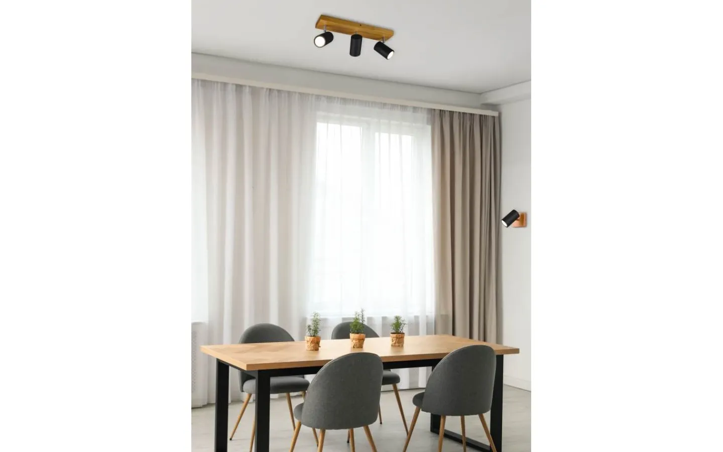 Perfekt och variabelt ljus! MARLEY-spotlighterna är inte bara praktiska i form och funktion, utan framför allt en sak: minimalistiska! Den individuella spotlighten har en diskret design och imponerar med sitt högkvalitativa utförande. Den är fritt rörlig och kan justeras individuellt efter behov. Oavsett om det är i köket, hallen eller vardagsrummet: MARLEY-spotlighten är mångsidig och kan enkelt kombineras med olika inredningsstilar. Den moderna kombinationen av trä och metall i mattsvart säkerställer mysighet och är helt trendig. För modern och pålitlig belysning rekommenderas en LED-lampa. Den erbjuder hög ljuskvalitet, är mångsidig och övertygar med jämn belysning. Dess långa livslängd och låga värmeutveckling gör den till det perfekta valet för en mängd olika användningsområden. Ljuskälla: exklusiv 1x GU10 · max. 15W. Extra information: Funktion122, IP20, Lampa(or) ingår ej, Vägg- och takmontering