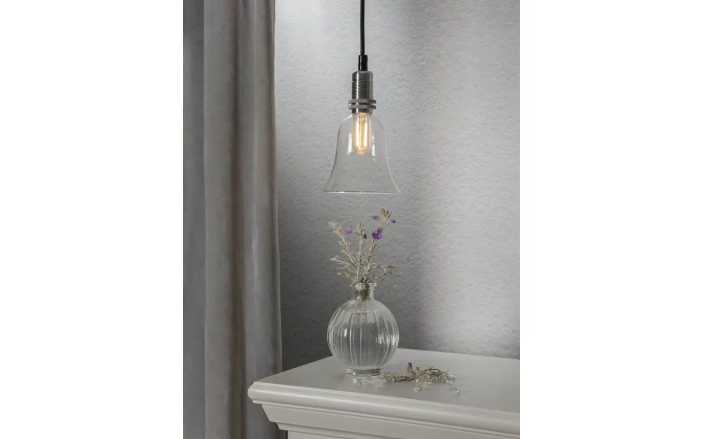 Klar filament LED-lampa med en E14-sockel. Färgtemperaturen är 2700K.