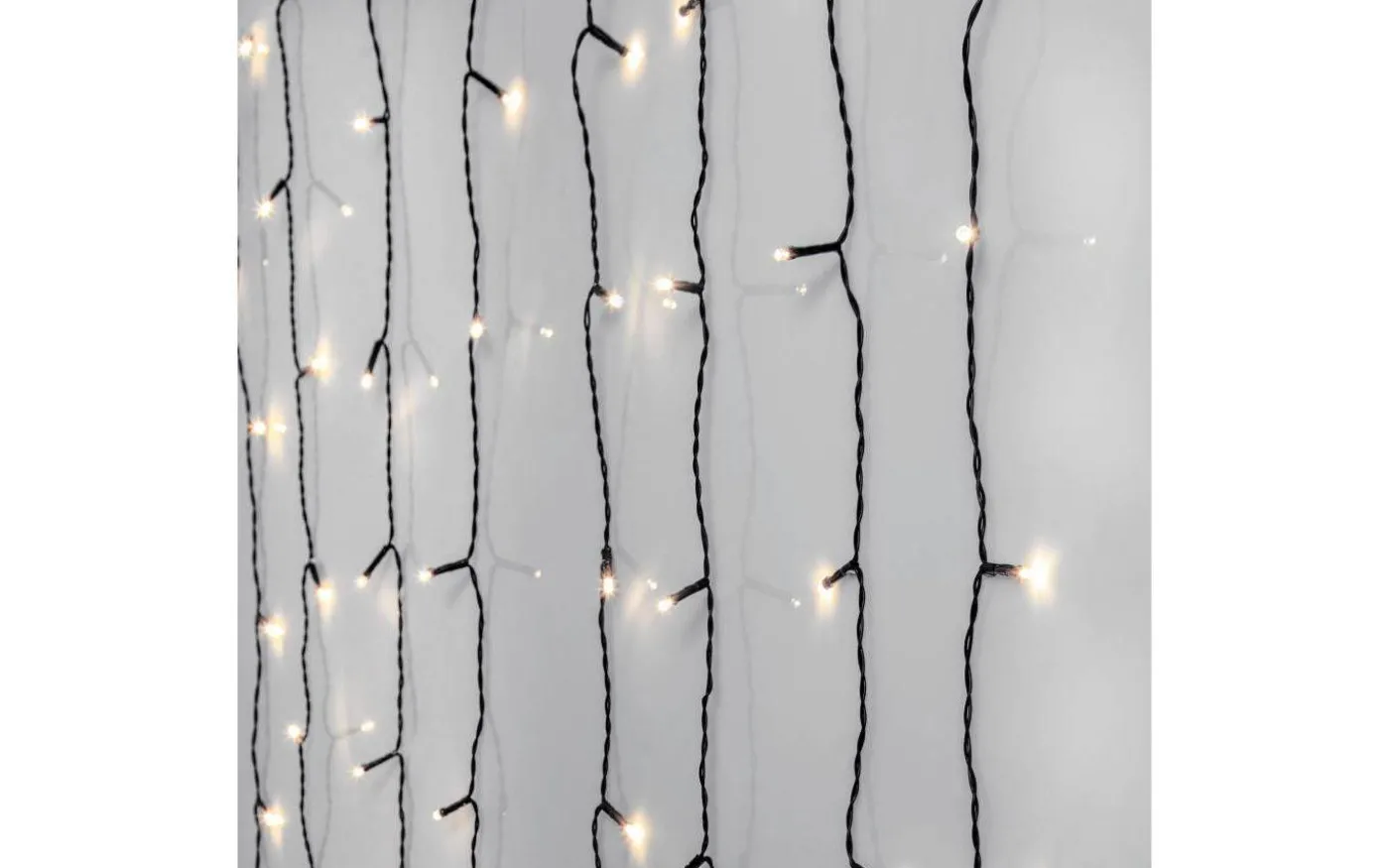 Vacker gardinslinga, från välkända Star Trading, med 8 stycken strängar med 10 LED-ljuskällor i varje. Dessa 80 stycken LED-ljuskällor lyser i ett lite kallare ljussken. Då varje ljuskälla sitter 13 cm ifrån varandra får denna slinga ett mjukt och jämt ljusflöde. Gardinslingan är 1.3×1.3 meter och levereras komplett med en anslutningskabel på 5 meter med stickkontakt för vägguttag.
