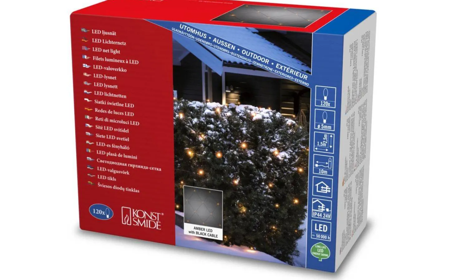 Vackert ljusnät från välkända Konstsmide. Ljusnätet är 2,5×1,5m och är försedd med 120st LED-lampor som lyser upp i ett härligt extra varmvitt ljussken. Med sin IP44-klassning är ljusnätet väl anpassad för utomhusbruk och passar perfekt att sätta på en mindre buske eller trädkrona.