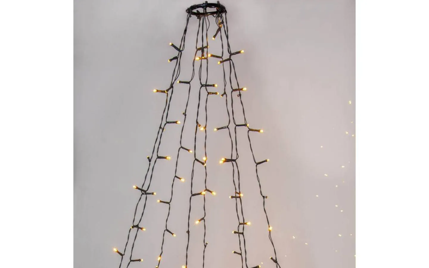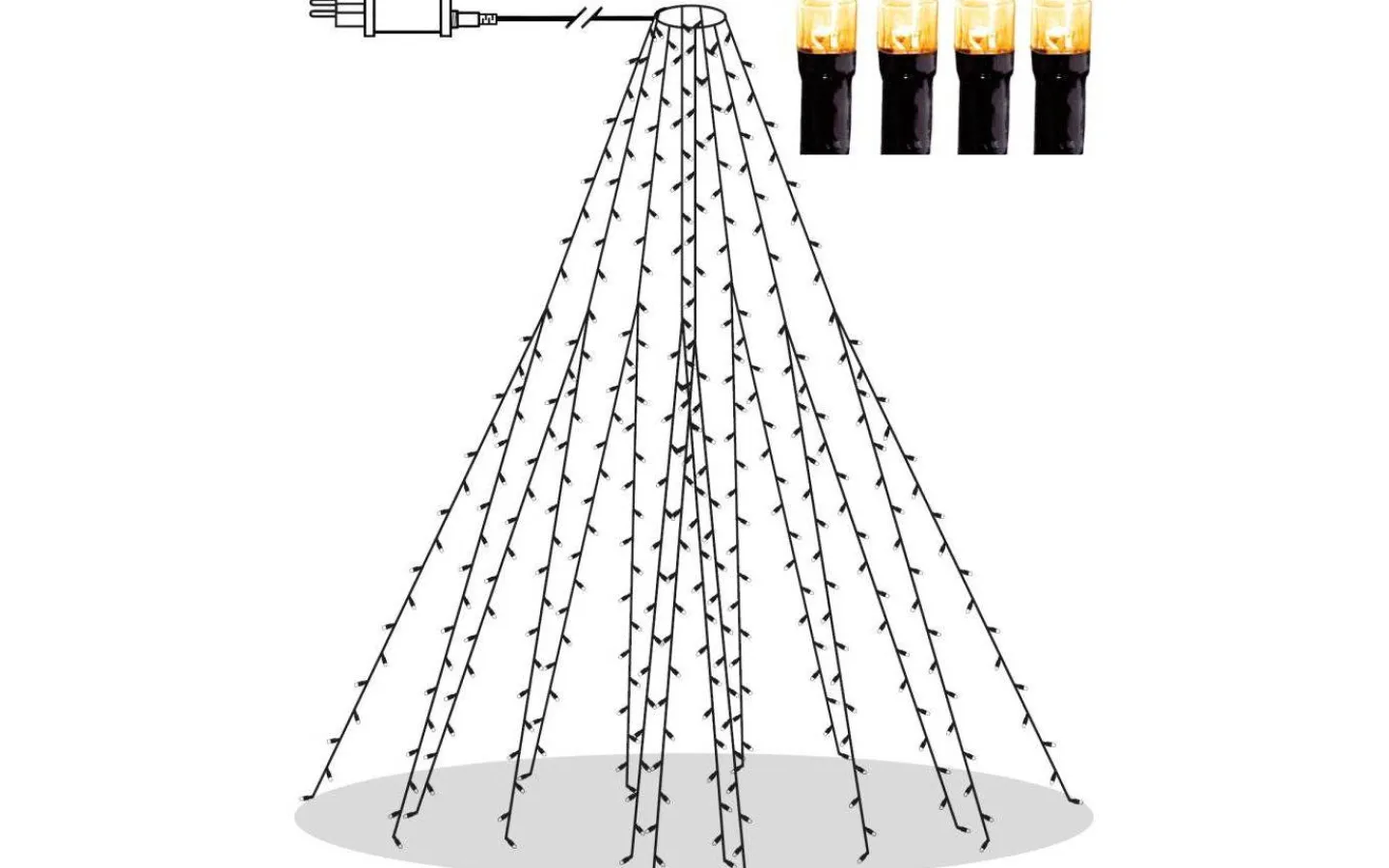 Julgransslinga med 360 LED lampor med vackert gyllene ljussken. Slingan är ca 2 meter hög med 8 strängar som delar sig för att få en jämn spridning av lysdioderna. Perfekt för din julgran både inne och utomhus.