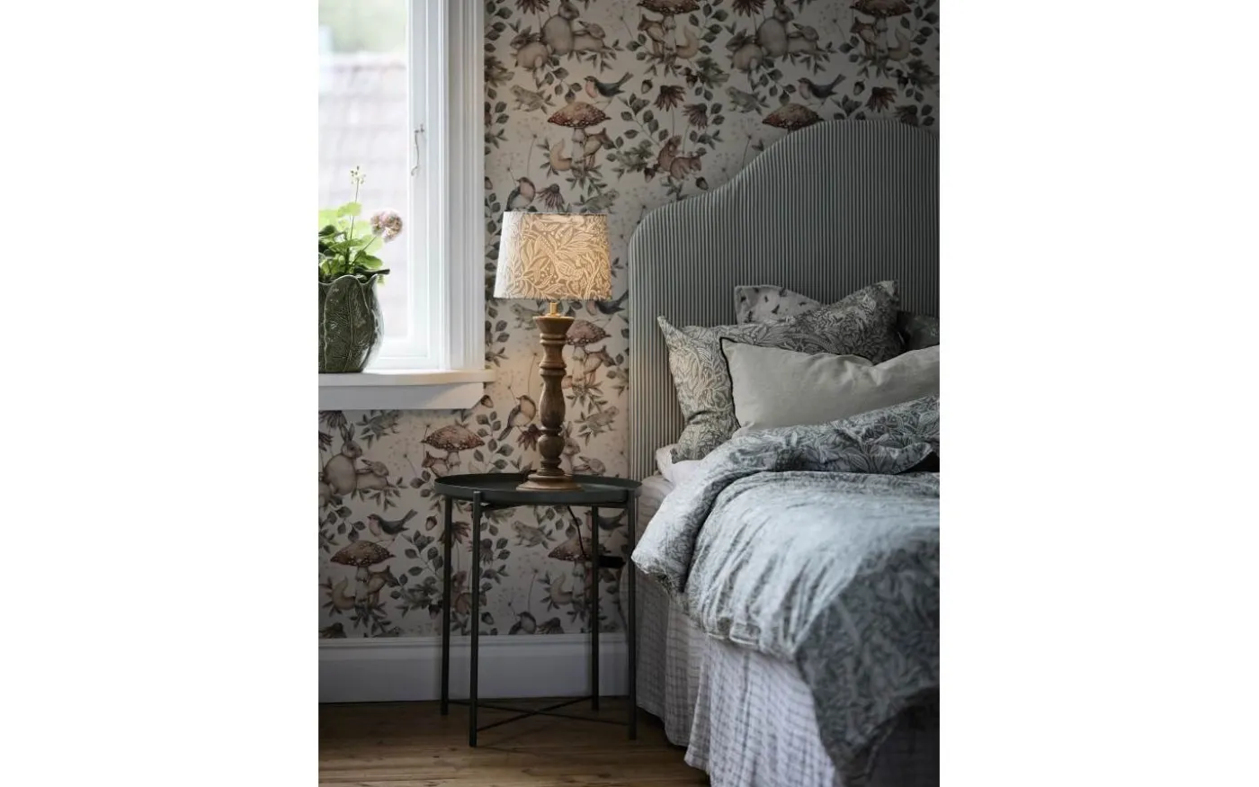 Lodge bordslampa från välkända PR Home är en elegant bordslampa med svarvad träfot och mönstrad lampskärm.