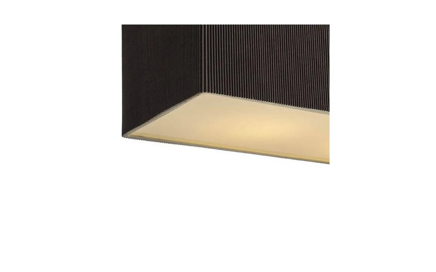 Pendellampa med en finplisserad svart skärm. Armaturen har fyra E27 socklar som är dolda av en diffusor av matt akryl.