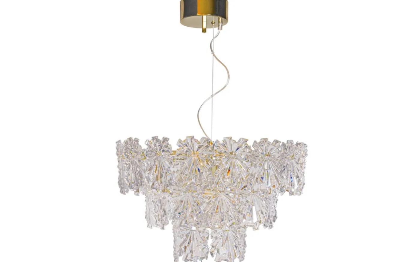 Lorraine taklampa från välkända By Rydens är en lyxig och dekorativ taklampa som ger rummet en elegant känsla. Med sin stomme i blank mässing och de vackra akrylplattorna som påminner om isiga snöflingor sprider lampan ett mjukt, behagligt ljus som vackert reflekteras mot den glänsande mässingen.