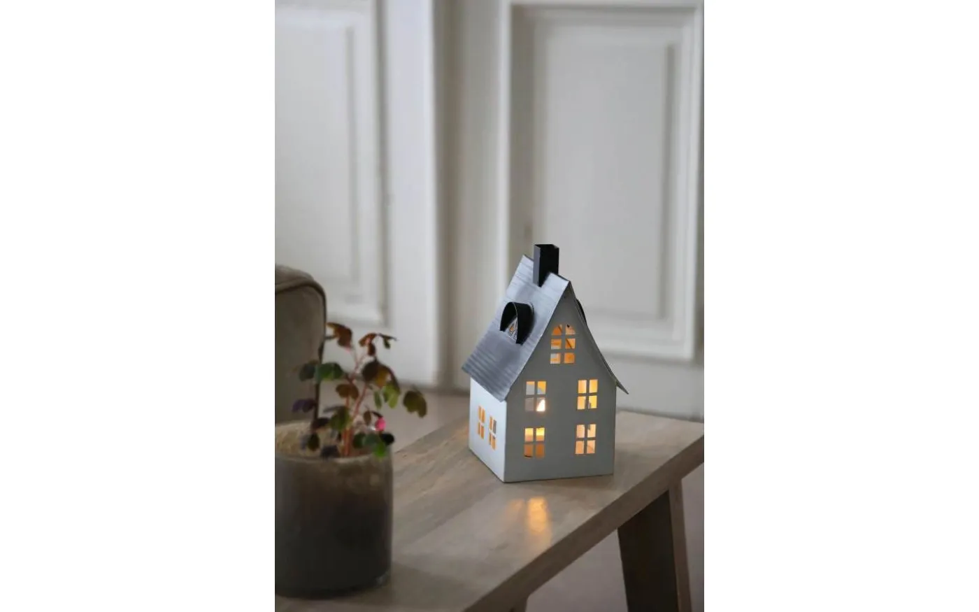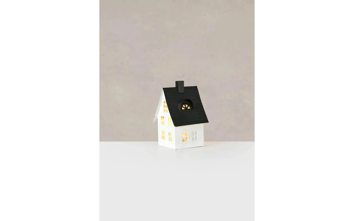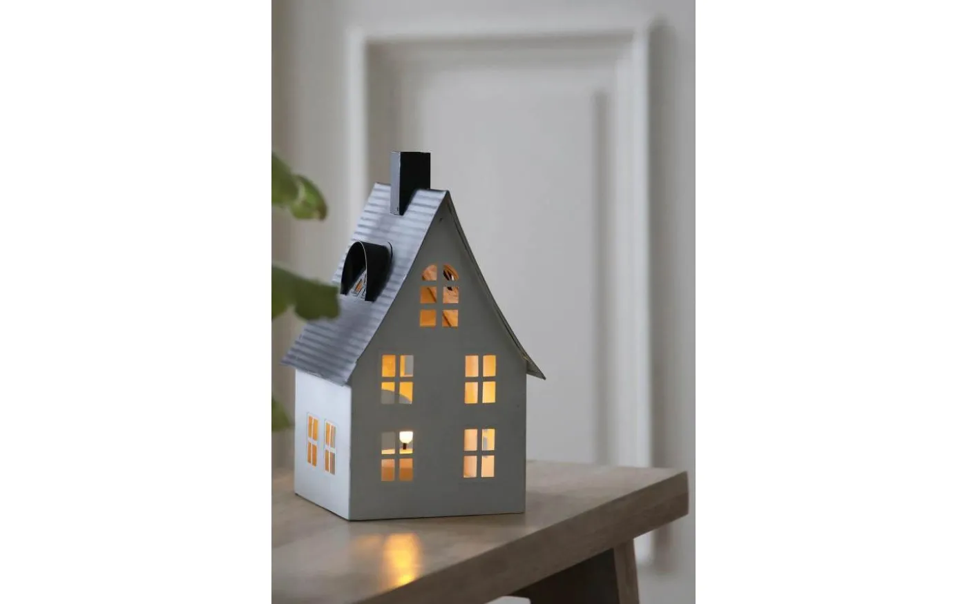 Luton bordsdekoration från Markslöjd. Bordsdekoration i form av ett hus i metall. Inkluderat LED värmeljus med On/Off brytare och timer. Timer 8h on och 16h off. Drivs med 1xCR2032 batteri. Batteri ingår ej.