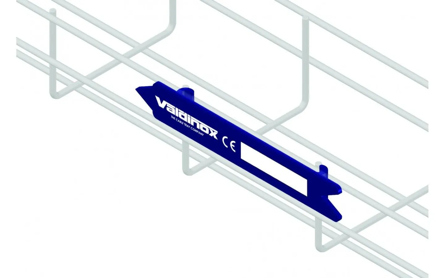 Märkskylt av halogenfri plast (UL94-V0) som snäpps på trådstegarna. Passar samtliga trådstegar.