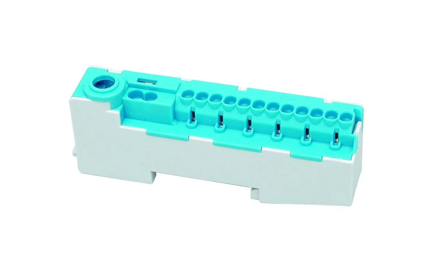 Plint med snabbanslutning, 12×1,5-2,5 mm² och 2×2,5-4 mm² samt en skruvanslutning upp till 25 mm². För DIN-skena samt beröringsskyddad.