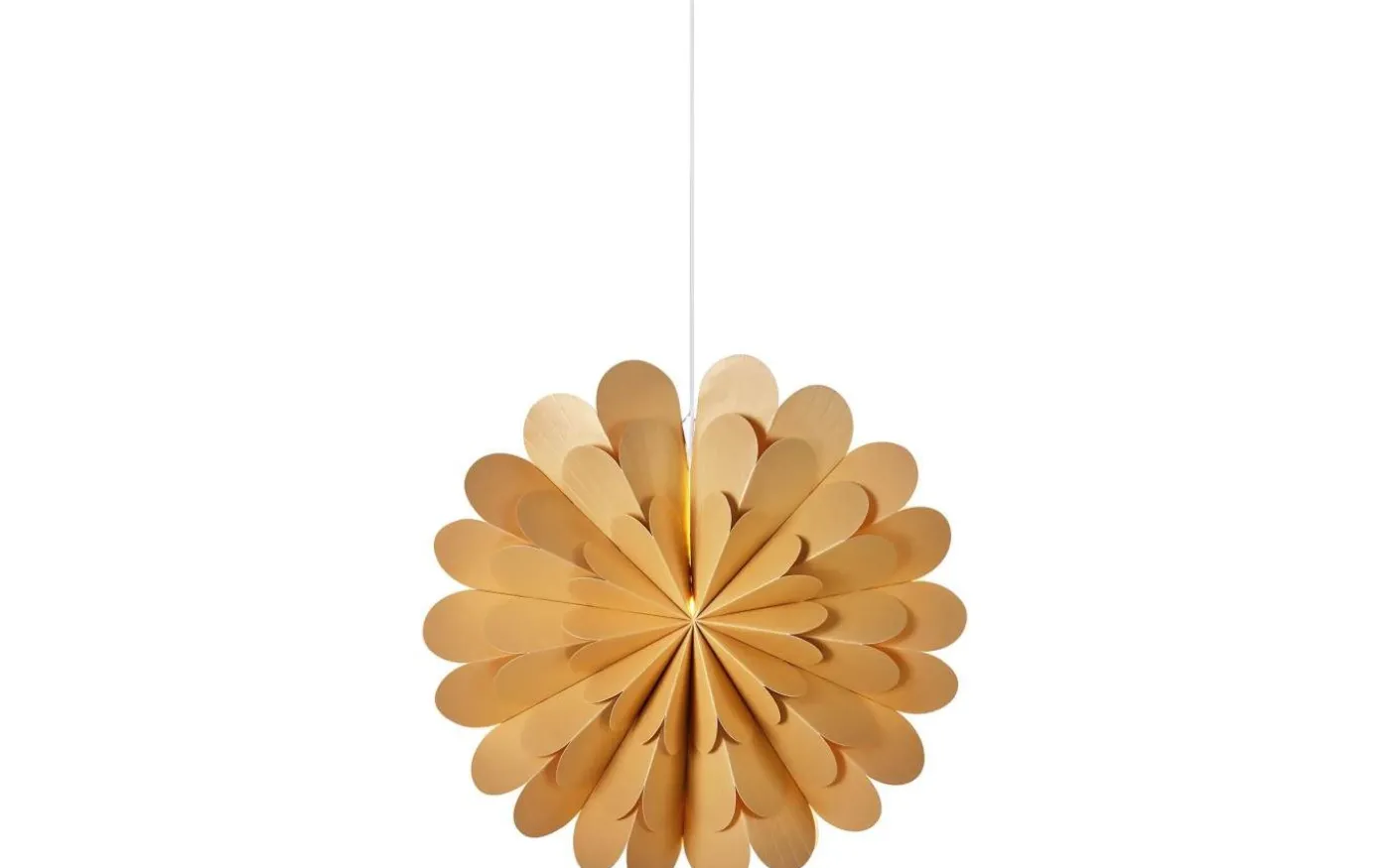 Fönsterlampan passar utmärkt i juletider, men också under övriga tiden på året. Det veckade pappret skapar ett vackert ljussken i rummet. Denna stjärna är en syster till den populära Marigold. En mer avskalad variant utan gulddetaljer men med samma härliga blommande känsla. Tekniskt: Lampan kräver en glödlampa med liten sockel (E14) om max 6W i LED, ingår ej. 3,5m vit sladd med strömbrytare. Lampan är dimbar.