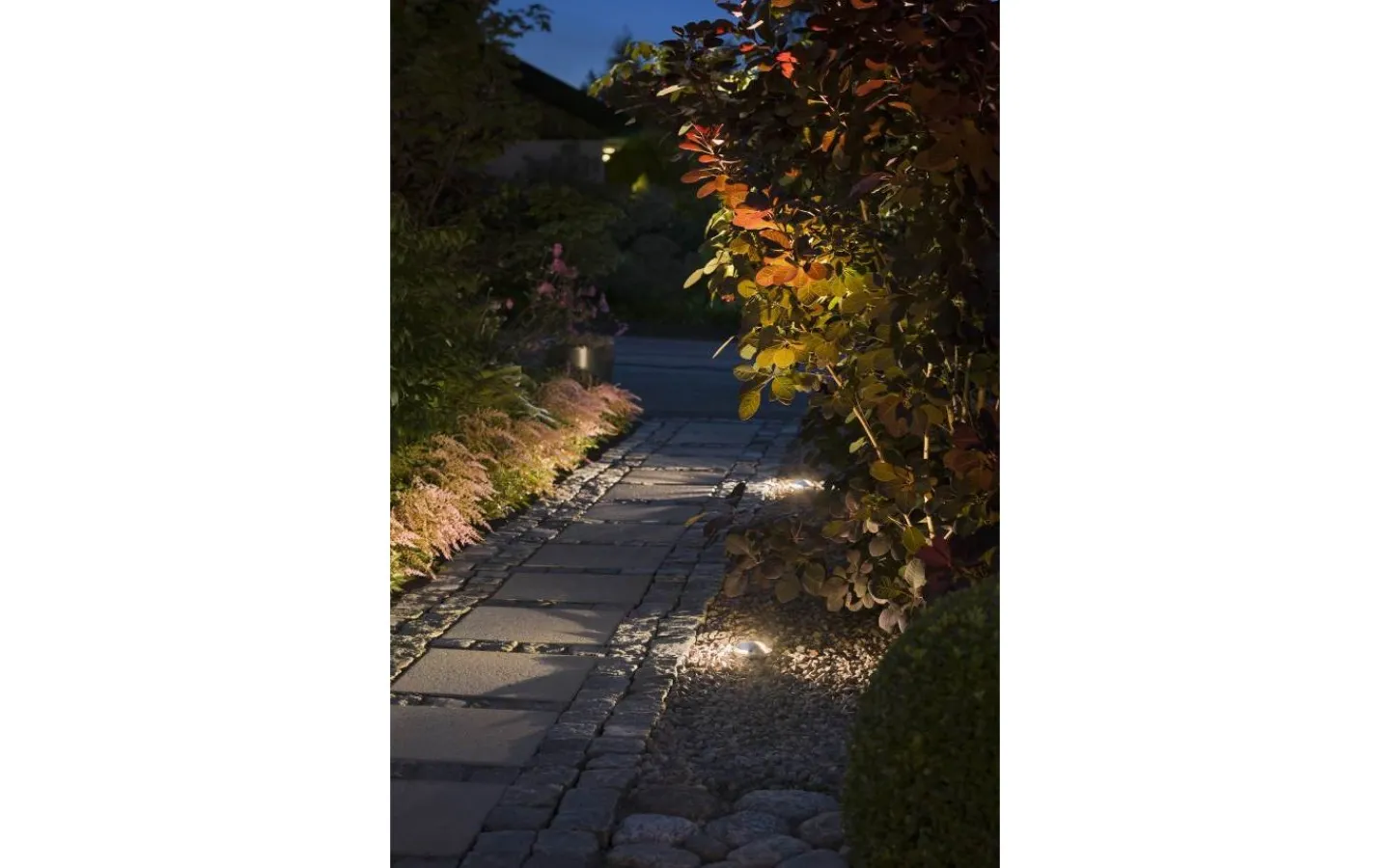 Placera markspotlighten direkt i gräsmattan eller stensättningen och skapa en effektfull belysning av fasad eller staket.