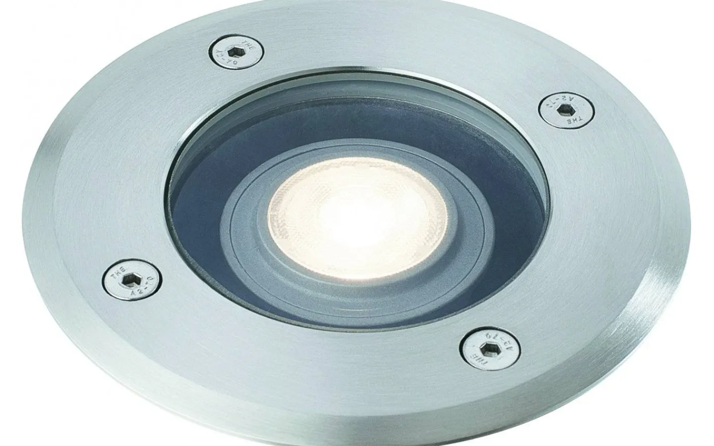 Mark- och golvspotlight för infällning i altangolv, trädgårdsgångar, garageuppfarter etc. Front i rostfritt stål 316 och klart skyddsglas. Anslutes till plint 3×2,5 mm². Ljuskälla ingår ej. GU10.