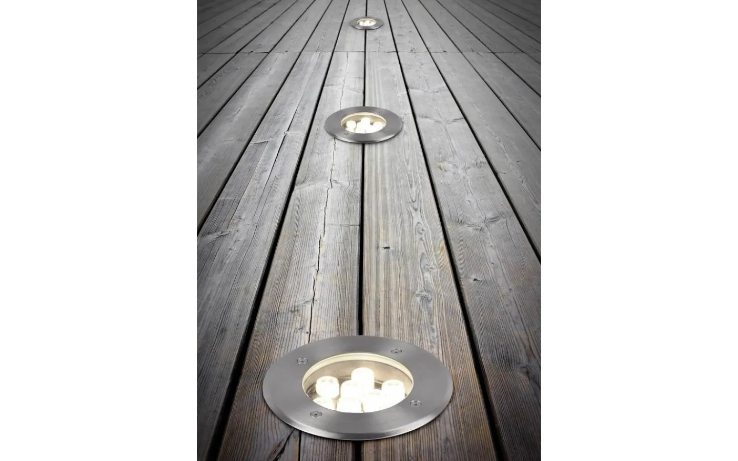Ljusa accenter med BELAJA markspotlight. Oavsett om det är för garageingången, terrassen eller trädgårdsrabatten, ger spotlighten effektiv och inbjudande belysning. Tack vare sin skyddsklass IP65 är den infällda armaturen skyddad mot inträngande smuts och vatten och är idealisk för utomhusbruk. Spotlighten har en strålvinkel på 40 grader och kan därför idealiskt belysa olika områden. Den infällda golvspotlighten har en diameter på 16 cm och en höjd på 12 cm och tål lätt en belastning på upp till 2000 kg. Spotlighten är ytbehandlad i matt nickel, vilket gör den helt tidlös och flexibel att integrera. Dessutom har armaturerna modern LED-teknik, vilket står för hög ljuskvalitet. LED-ljuskällor kännetecknas av lång livslängd och låg värmeutveckling. Ljuskälla: inklusive 1x SMD LED, 8W · 1x 900lm, 3000K. Extra information: IP65, Ej dimbar