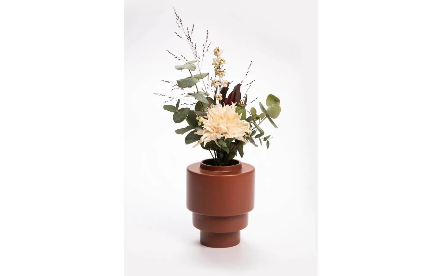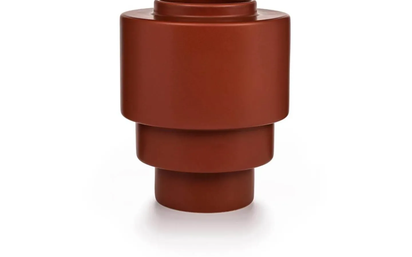 Lyxig keramikvas i roströd, matt färg. Höjd på 19,5 cm. Tillverkad i Portugal. Designad av Monika Mulder.