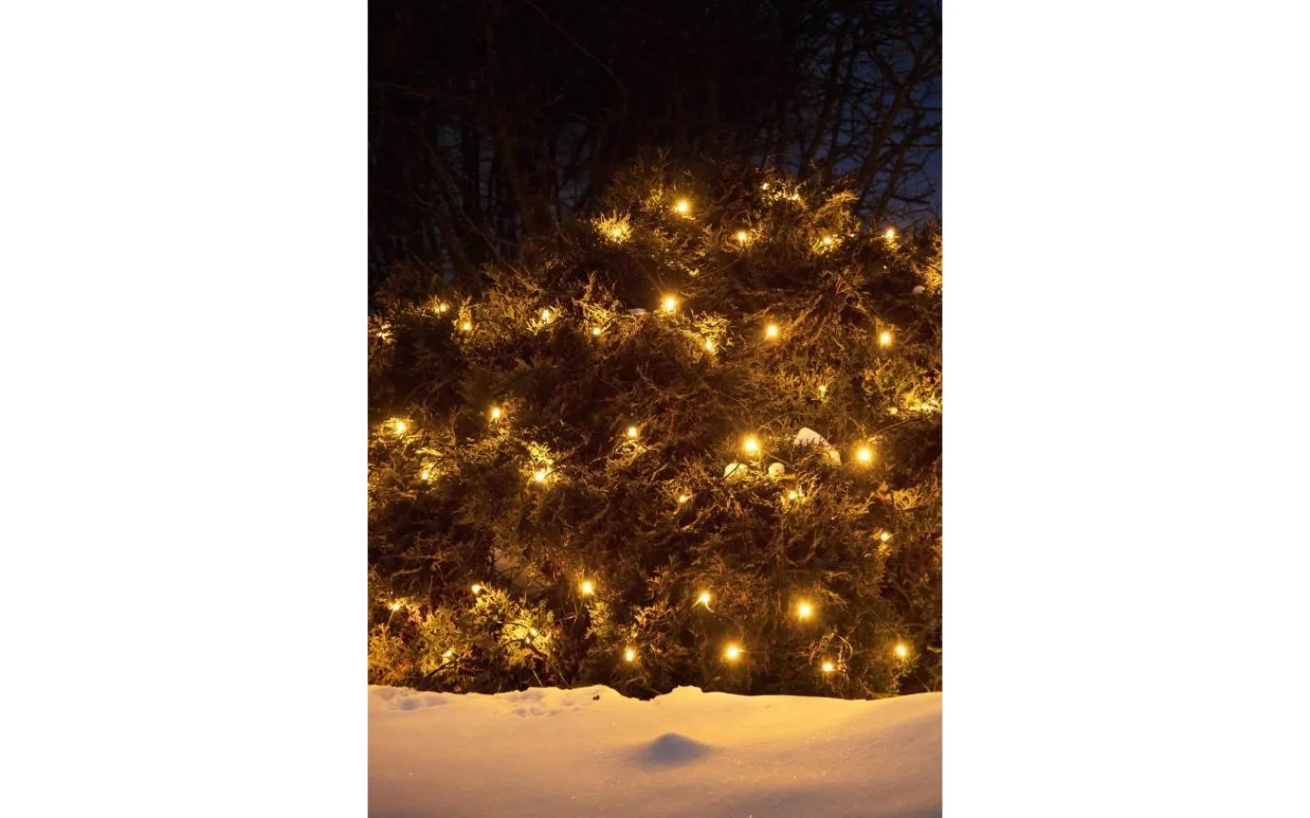 Chrissline ljusnät är 2m brett och 1,7m högt med 100st LED-lampor som avger ett extra varmvitt ljussken. Ljusnätet ingår i Chrissline-systemet från Markslöjd som är ett utbyggbart belysningssystem anpassat för det Skandinaviska utomhusklimatet året om.