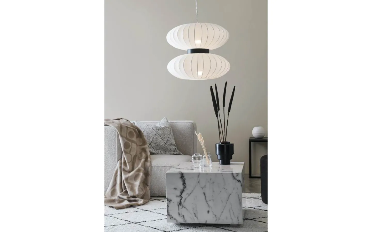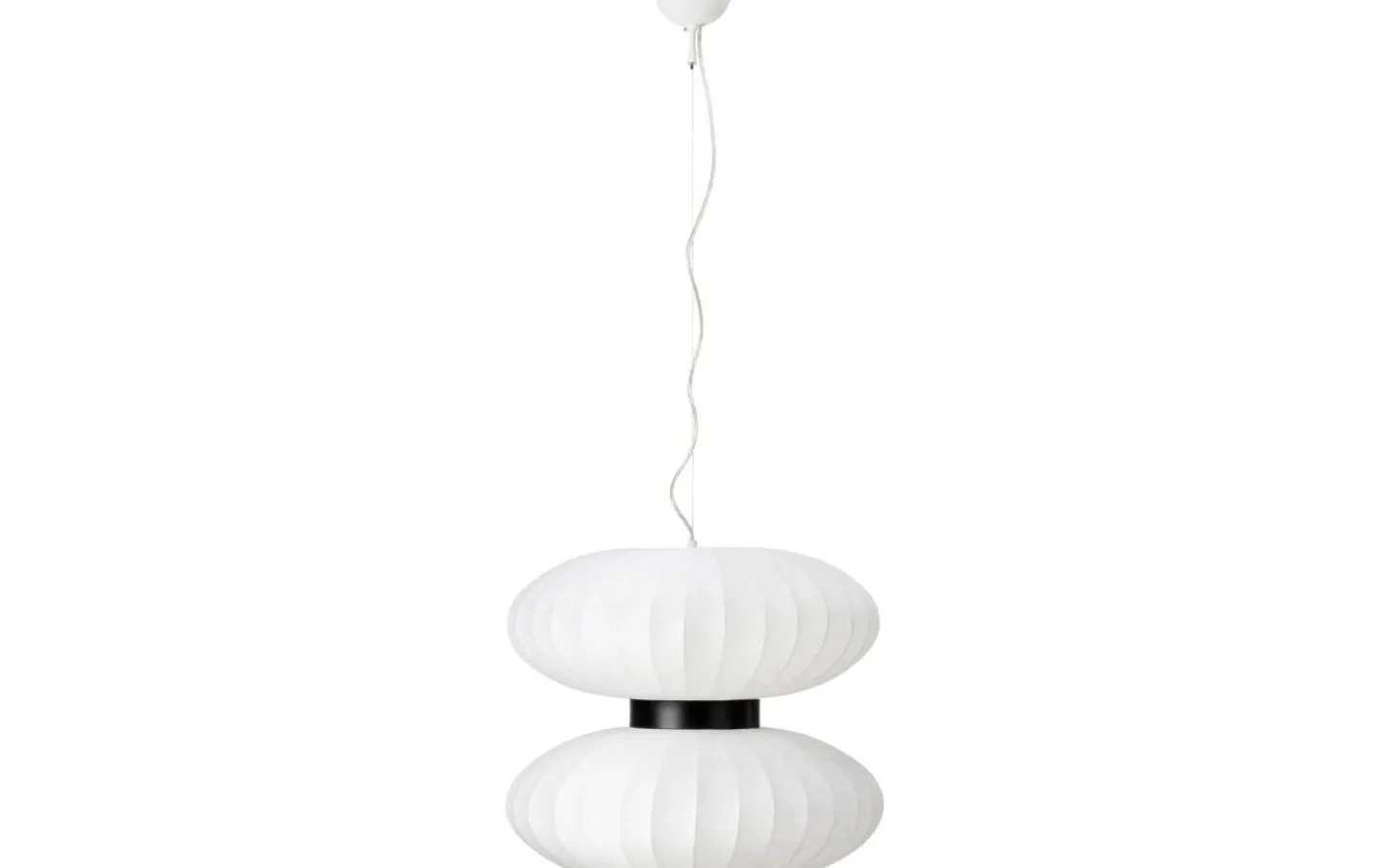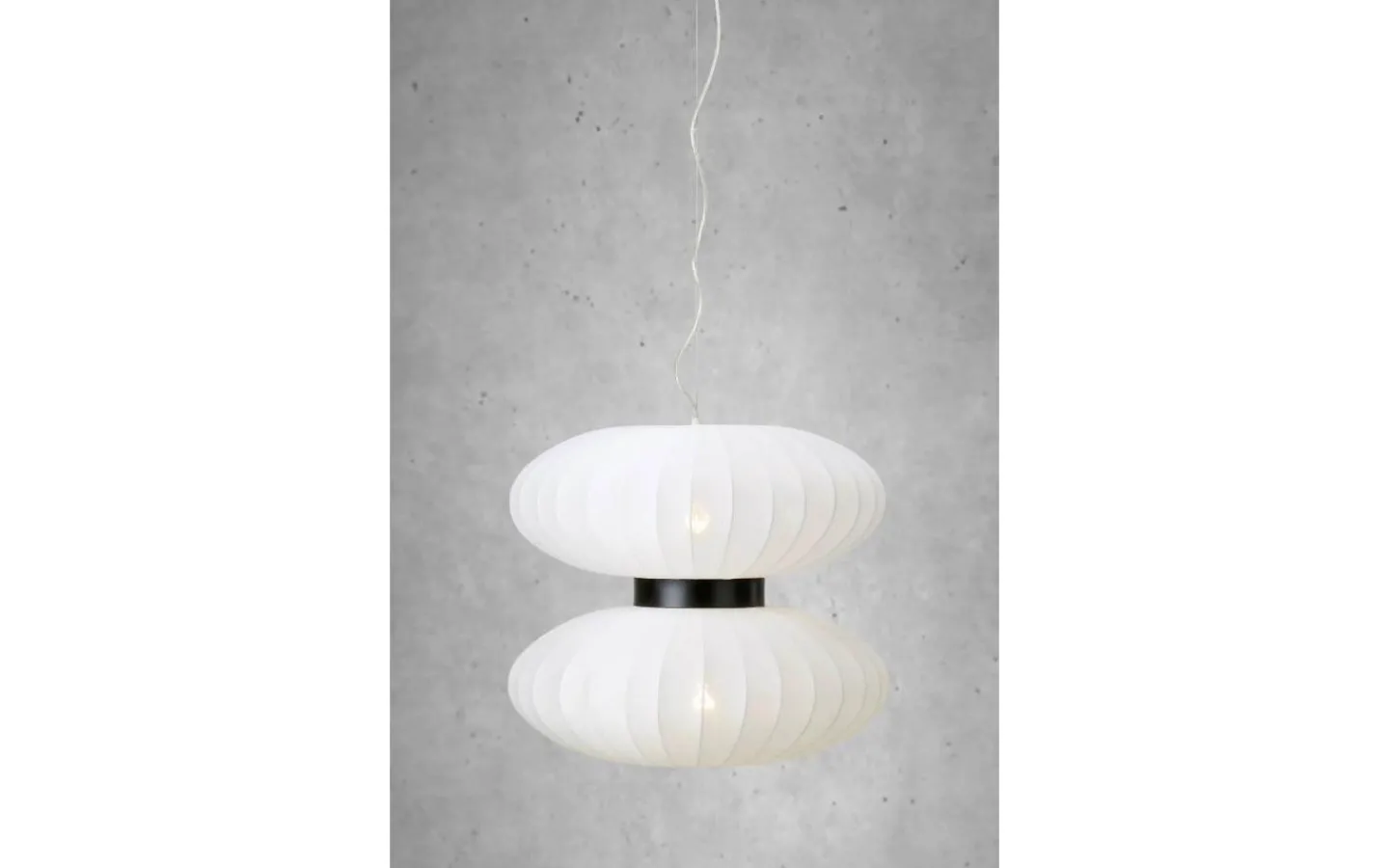Härliga taklampan Daburu, från välkända Markslöjd, en vacker taklampa i vit textil (polyester) med svart metalldetalj. Den skira textilen släpper genom ett mjukt och fint ljusflöde och Daburu taklampa blir en stilren inredningsdetalj oavsett om du placerar den i sovrummet eller över soffbordet.