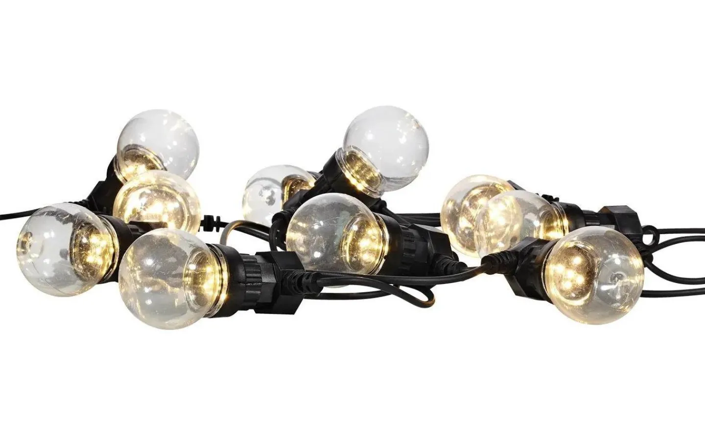 Dakke ljusslinga från välkända Markslöjd är godkänd för utomhusbruk. 4,5m slinga med 10 ”Glödlampor” med vardera 5 LED-ljus Max 4,2W. En 3meter sladd med plug-in- transformator.