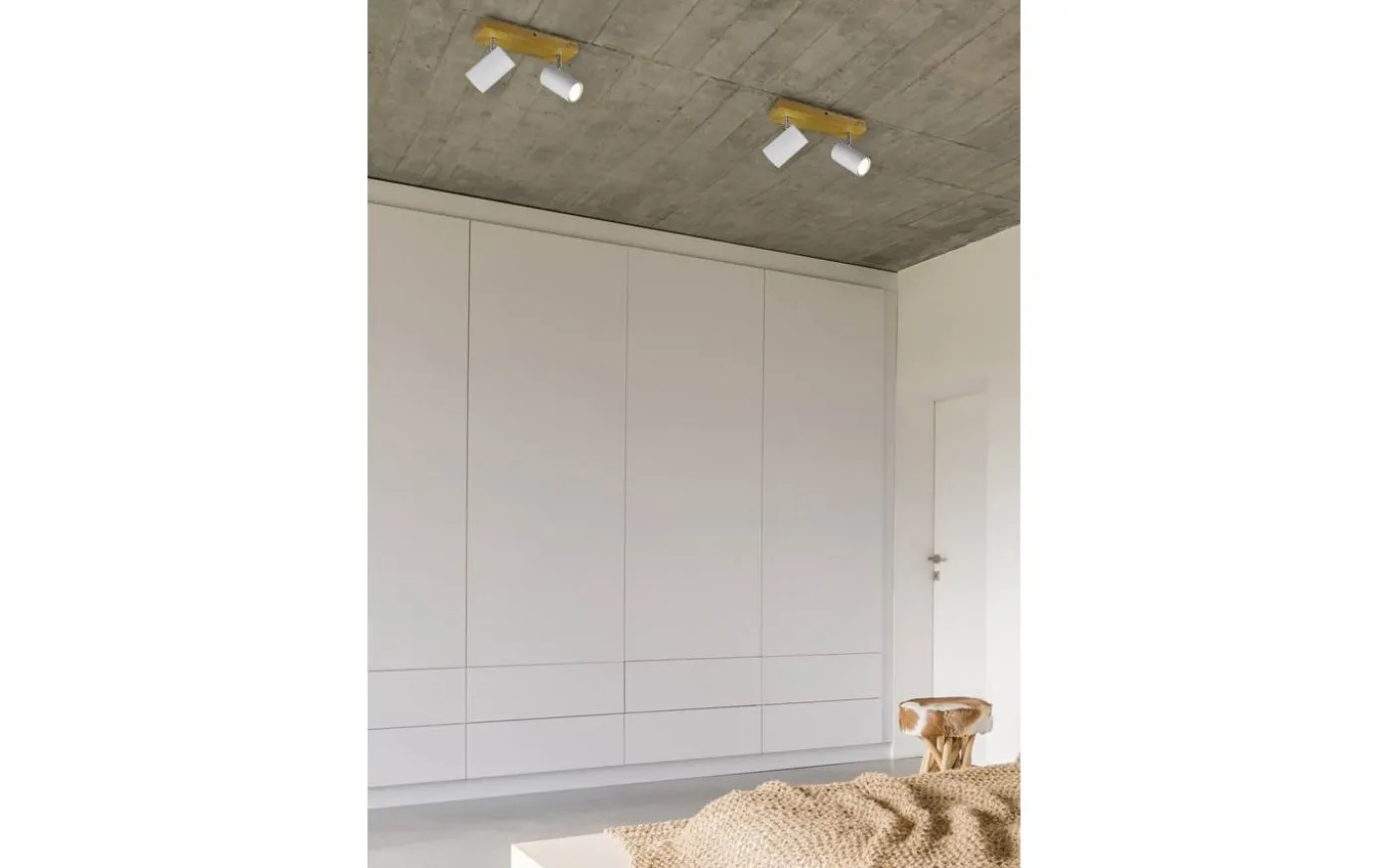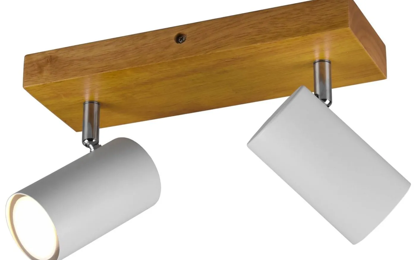 Perfekt och variabelt ljus! MARLEY-spotlighterna är inte bara praktiska i form och funktion, utan framför allt en sak: minimalistiska! Armaturen har en diskret design och imponerar med sitt högkvalitativa utförande. Spotlighterna i den tvålampsarmaturen är fritt rörliga och kan individuellt justeras efter behov. Oavsett om det är i köket, hallen eller vardagsrummet: MARLEY är mångsidig och kan enkelt kombineras med olika inredningsstilar. Den moderna kombinationen av trä och metall i mattvitt garanterar mysighet och är helt trendig. För modern och pålitlig belysning rekommenderas en LED-lampa. Den erbjuder hög ljuskvalitet, är mångsidig och övertygar med jämn belysning. Dess långa livslängd och låga värmeutveckling gör den till det perfekta valet för en mängd olika användningsområden. Ljuskälla: exklusiv 2x GU10 · max. 35W. Extra information: Takmontering, IP20, Lampa(or) ingår ej