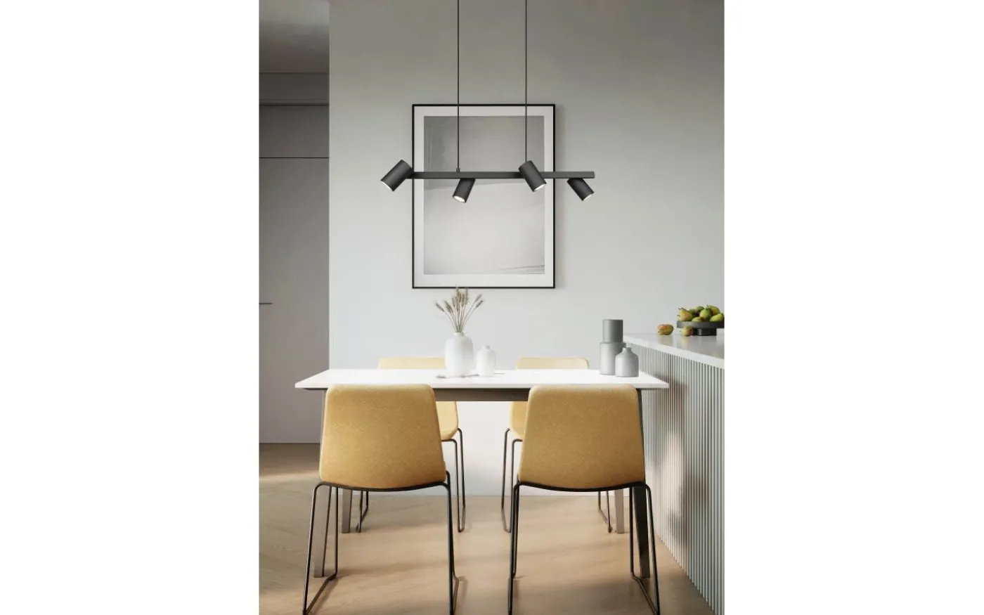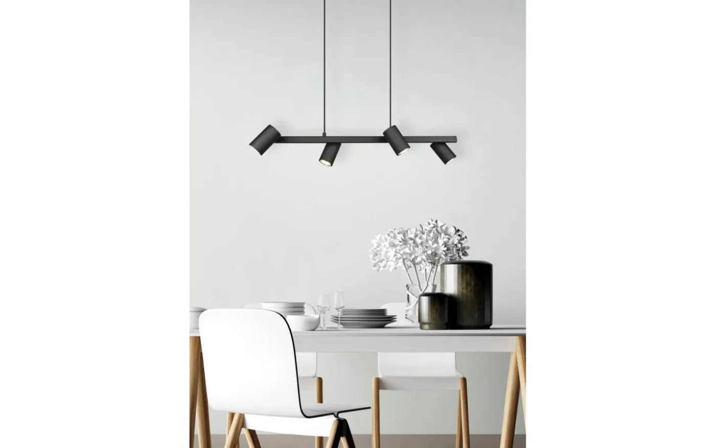 MARLEY-pendellampan är inte bara praktisk i form och funktion, utan framför allt en sak: helt enkelt vacker! Lampan har en diskret design och imponerar med sitt högkvalitativa hantverk. Oavsett om den är i köket eller i vardagsrummet: MARLEY-lampan med fyra lampor är mångsidig och kan enkelt kombineras med olika inredningsstilar. Pendellampan är designad i mattsvart och kan därför elegant komplettera och fullända moderna färgkoncept. För modern och pålitlig belysning rekommenderas en LED-lampa. Den erbjuder hög ljuskvalitet, är mångsidig och övertygar med en jämn belysning. Dess långa livslängd och låga värmeutveckling gör den till det perfekta valet för en mängd olika användningsområden. Ljuskälla: exklusiv 4x GU10 · max. 35W. Extra information: Justerbar i höjd, Takmontering, IP20, Lampa(or) ingår ej