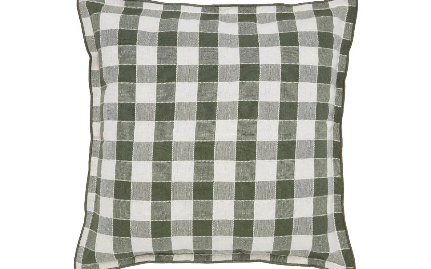 Mary kuddfodral från Svanefors i bomull med garnfärgade rutor och overlockade kanter. Kuddfodralet har måttet 45×45 cm och har dragkedja i nederkant.