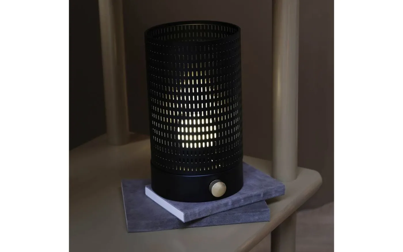 LED-lykta, metallnät, steglös ljusjustering. Sladd medföljer till lampan. USB-C laddning.