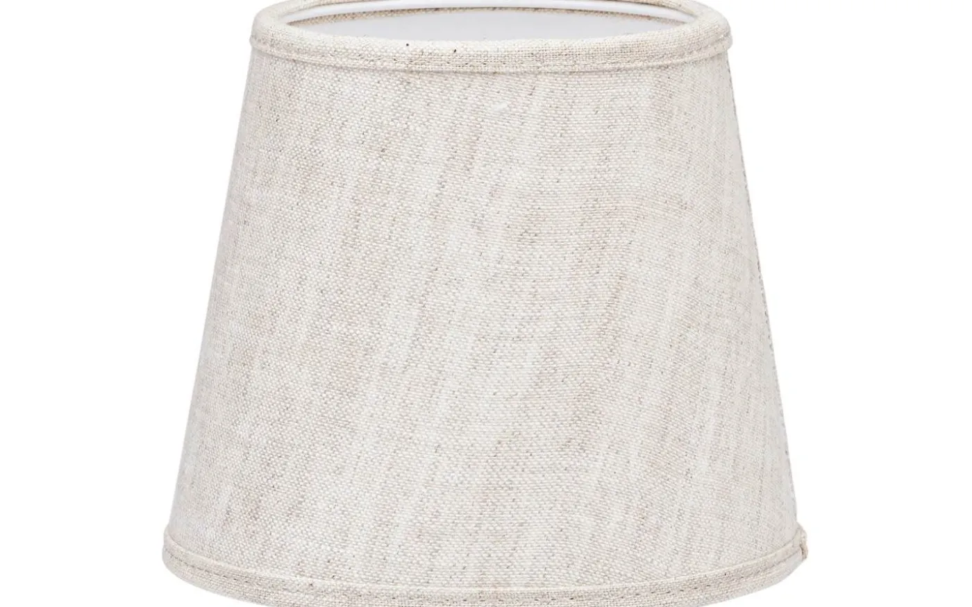 Mia lampskärm från PR Home är tillverkad i linnetyg och har ett klofäste som passar på en klotformad ljuskälla. Lampskärmen har en vit insida och kantband i ovan och underkant i samma tyg som skärmen.