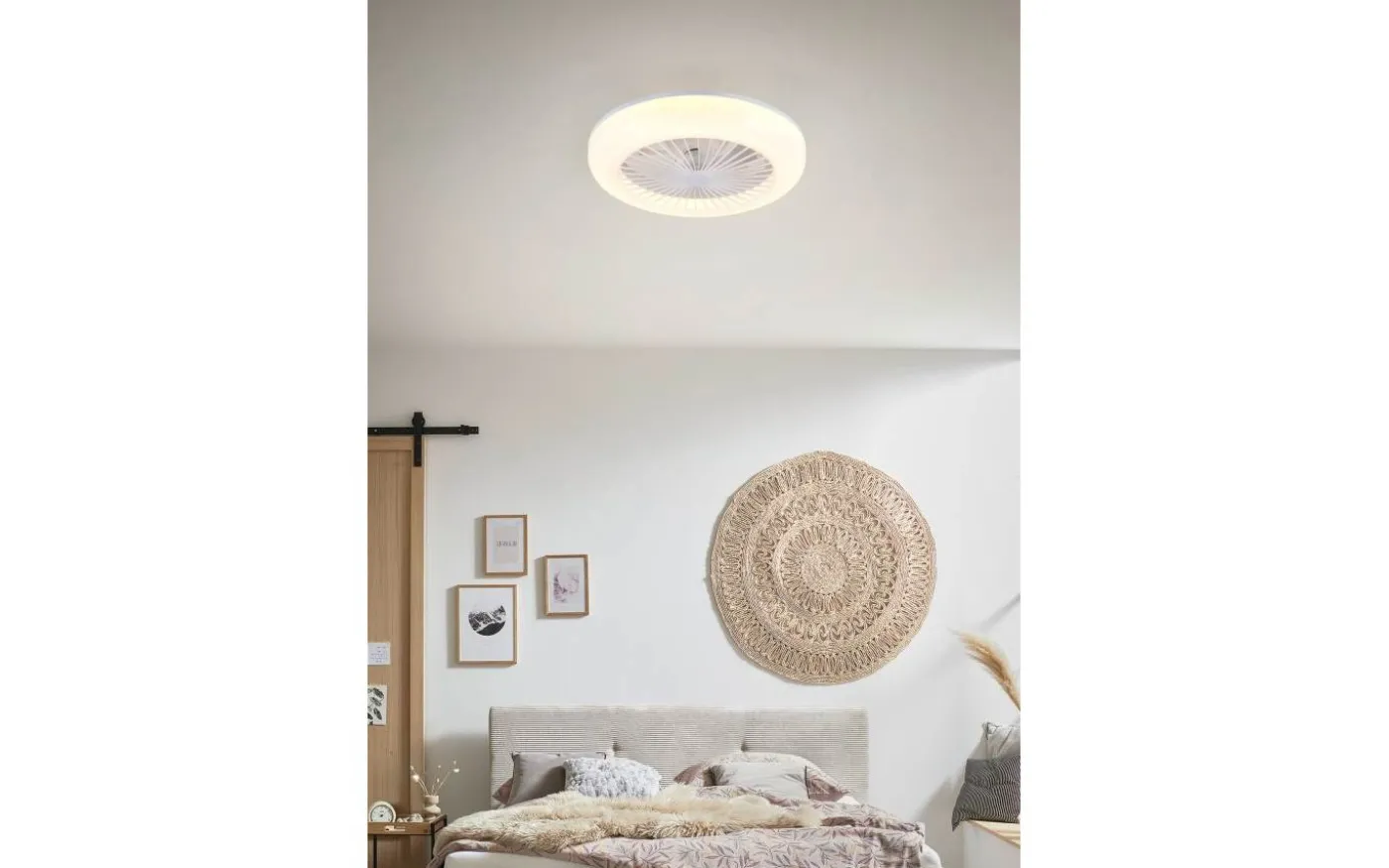 Ljuskälla: inklusive 1x SMD, 15W · 1x 1800lm, 2700 – 6000K. Extra information: 3 hastighetslägen, Takmontering, Integrerad dimmer, IP20, Steglöst justerbar ljusfärg, Nattlampa, Fjärrkontroll, Separat omkopplingsbar, Timer, Fläkt
