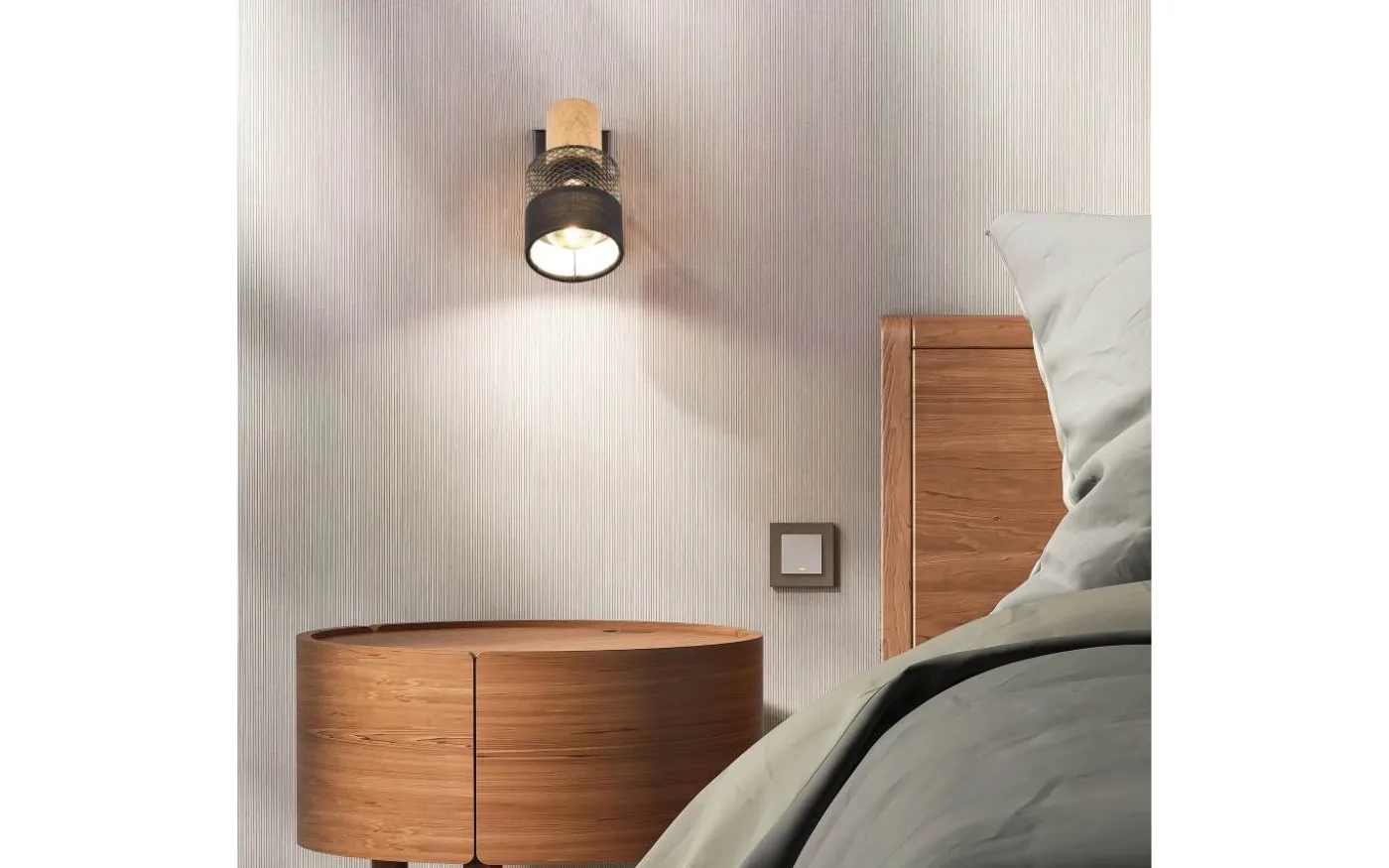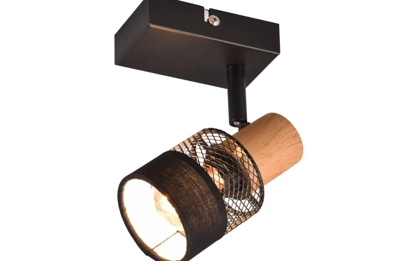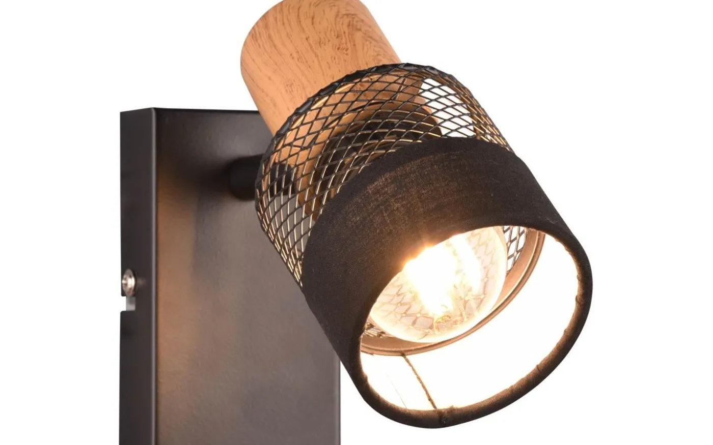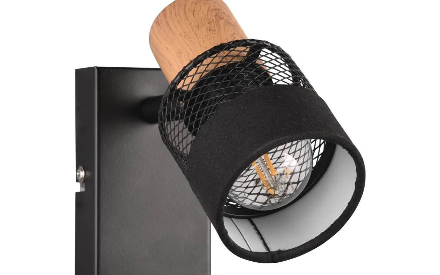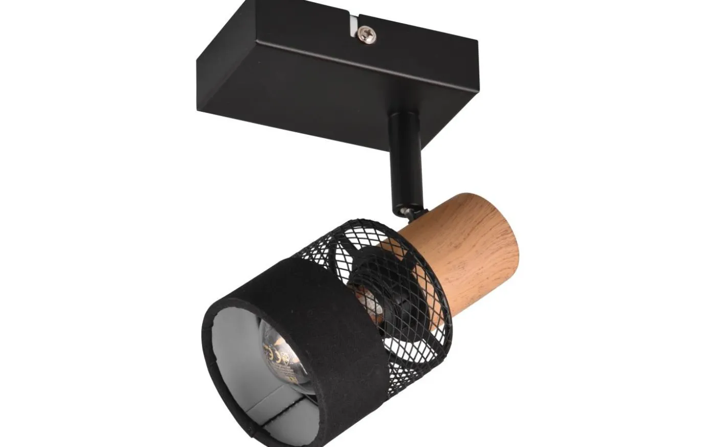 Lätthet genom en intressant materialmix! Spotlighterna i NANDINI-serien kombinerar trä, textil och metall på ett tidlöst sätt som är väldigt trendigt just nu och samtidigt skapar en mysig boendeatmosfär. Den enlågiga spotlighten är det perfekta valet för att sätta individuella ljusaccenter i hallen eller vardagsrummet och övertygar med sin flexibla montering på vägg eller tak. Spotlighten kommer att glädja dig med sin mysiga känsla och ljusspel! Kombinationen av metall i mattsvart och träelement finns i moderna och minimalistiska inredningsstilar. För modern och pålitlig belysning rekommenderas användning av en LED-lampa. Den erbjuder hög ljuskvalitet, är mångsidig och övertygar med jämn belysning. Dess långa livslängd och låga värmeutveckling gör den till det perfekta valet för en mängd olika användningsområden. Ljuskälla: exklusiv 1x E14 · max. 10W. Extra information: IP20, Lampa(or) ingår ej, Väggmontering