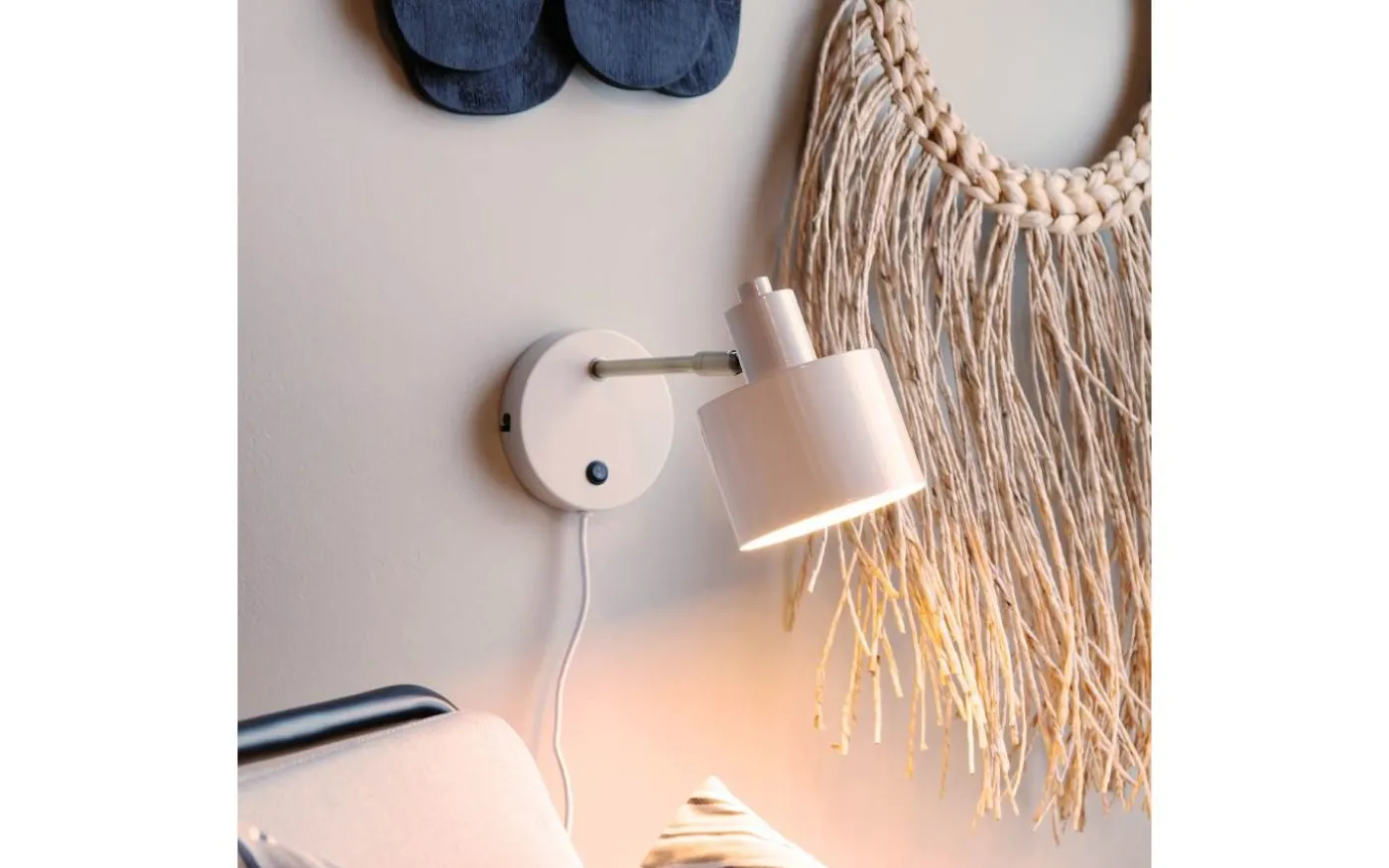 Vägglampa i modern design där avståndet mellan vägg och skärm ger många användningsmöjligheter.