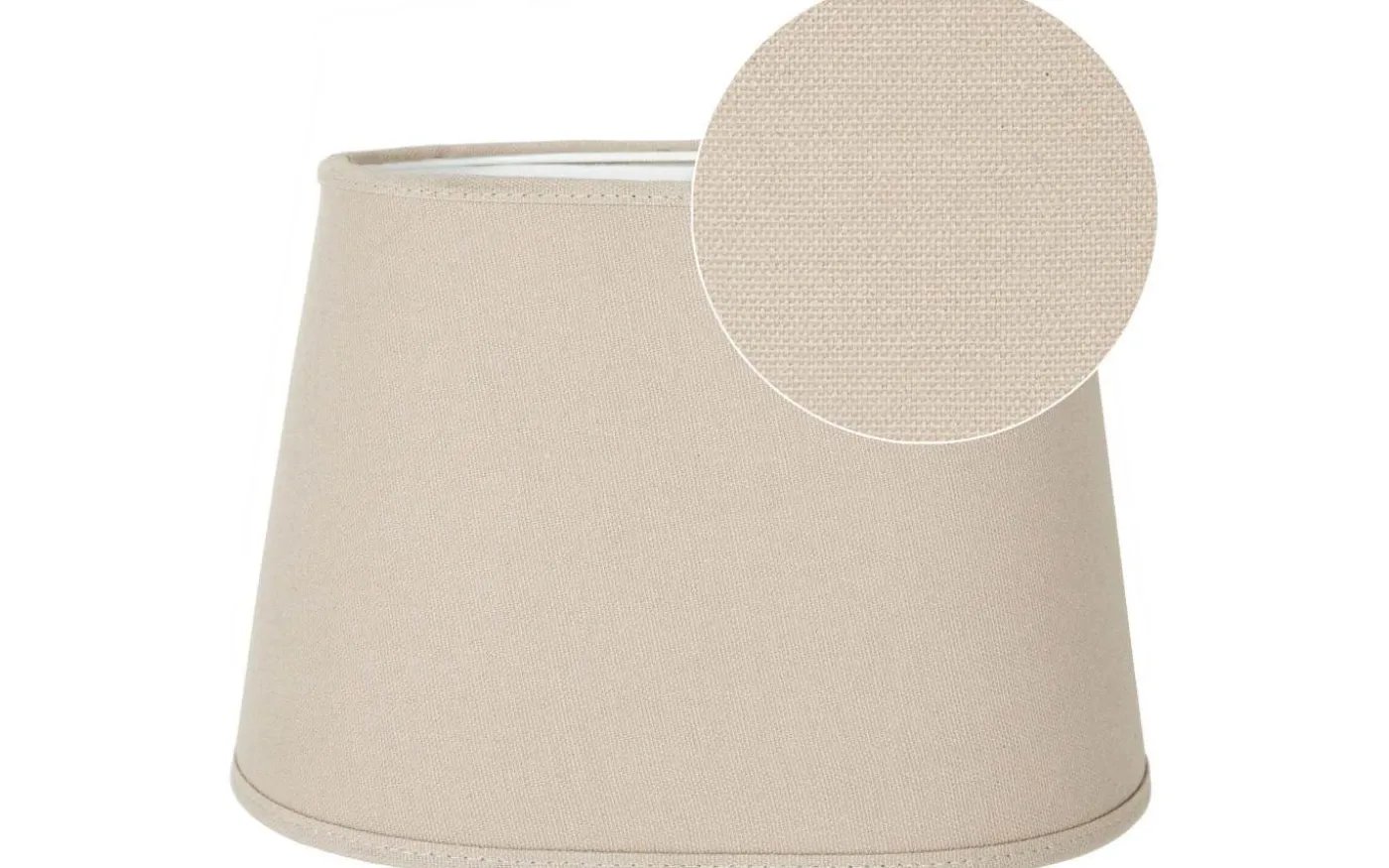Omera lampskärm från välkända PR Home är en oval lampskärm tillverkad i ett gediget bomullstyg med matt yta med matchande kantband i ovan- och underkant. Den ljusa insidan gör att ljuset reflekteras mjukt och fint. Denna lampskärm har klofäste och passar på en klotformad ljuskälla.
