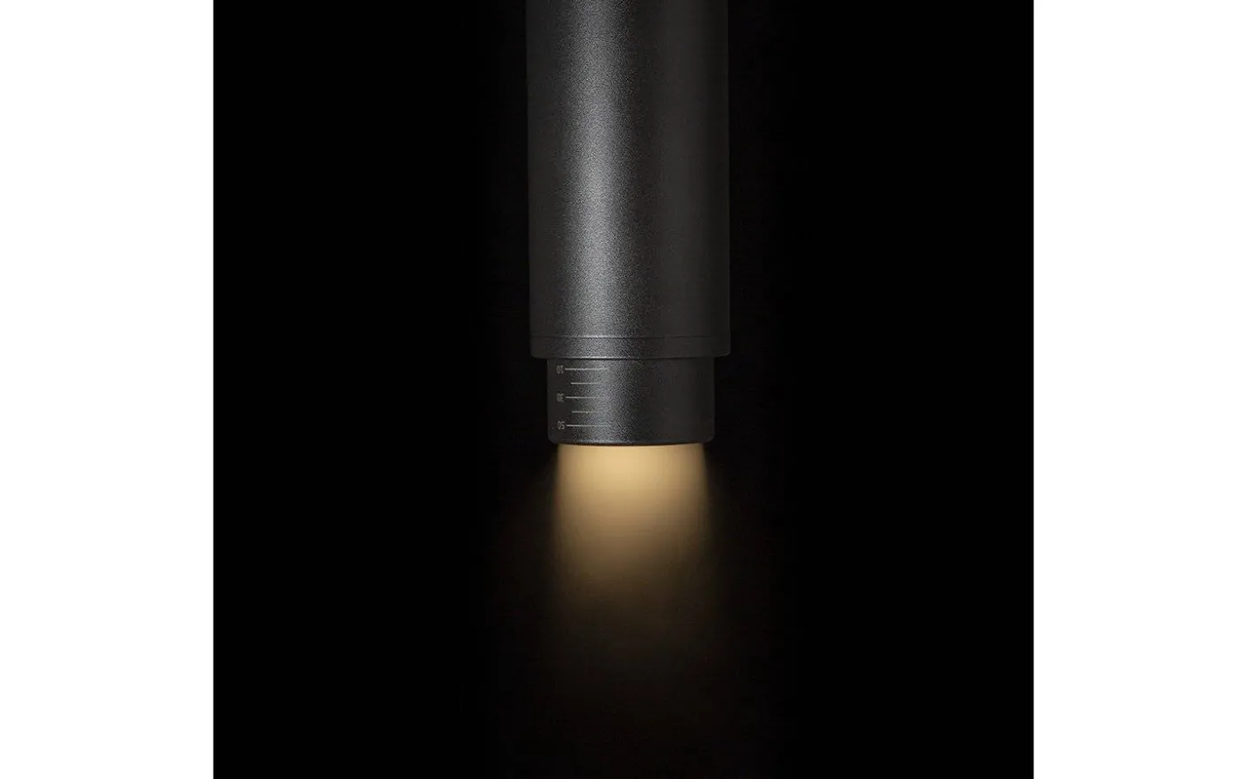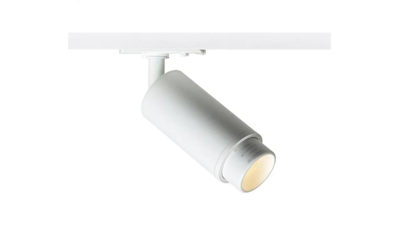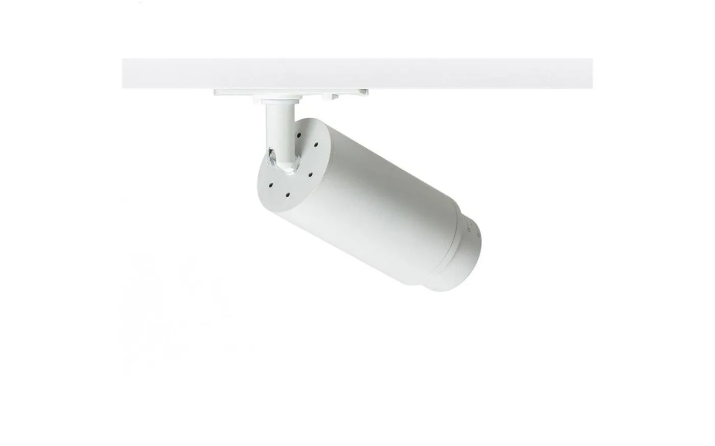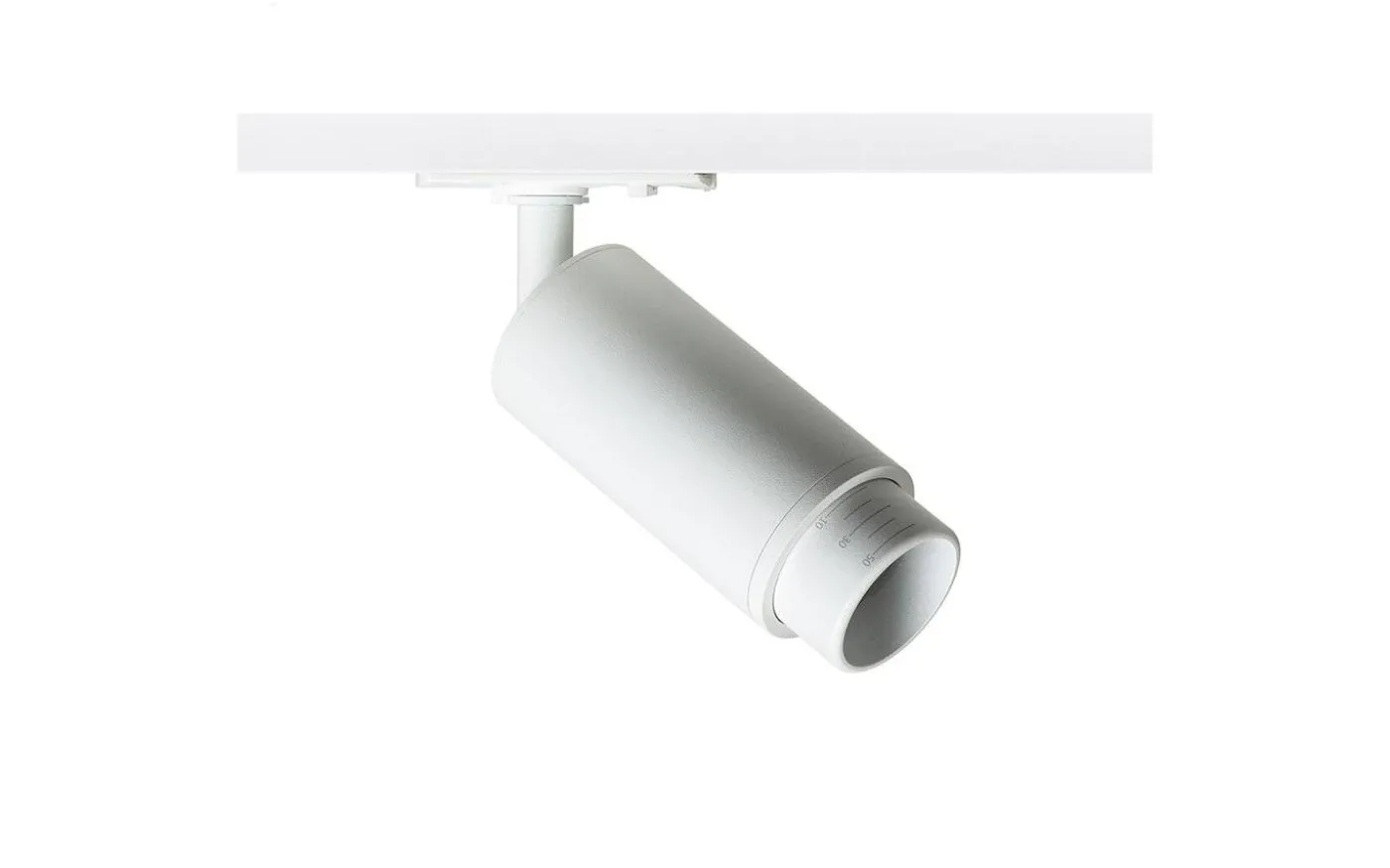 Cylindrisk spotlight for 1-fasskena med GU10-sockel för LED-ljuskällor som har möjlighet att ändra ljusvinkeln på ljuskällan mellan 10 – 50° via den s.k. zoom-funktionen. För att undvika oönskade skuggor bör lampan kompletteras med ljuskällor som har spridningsvinkel på 120°.