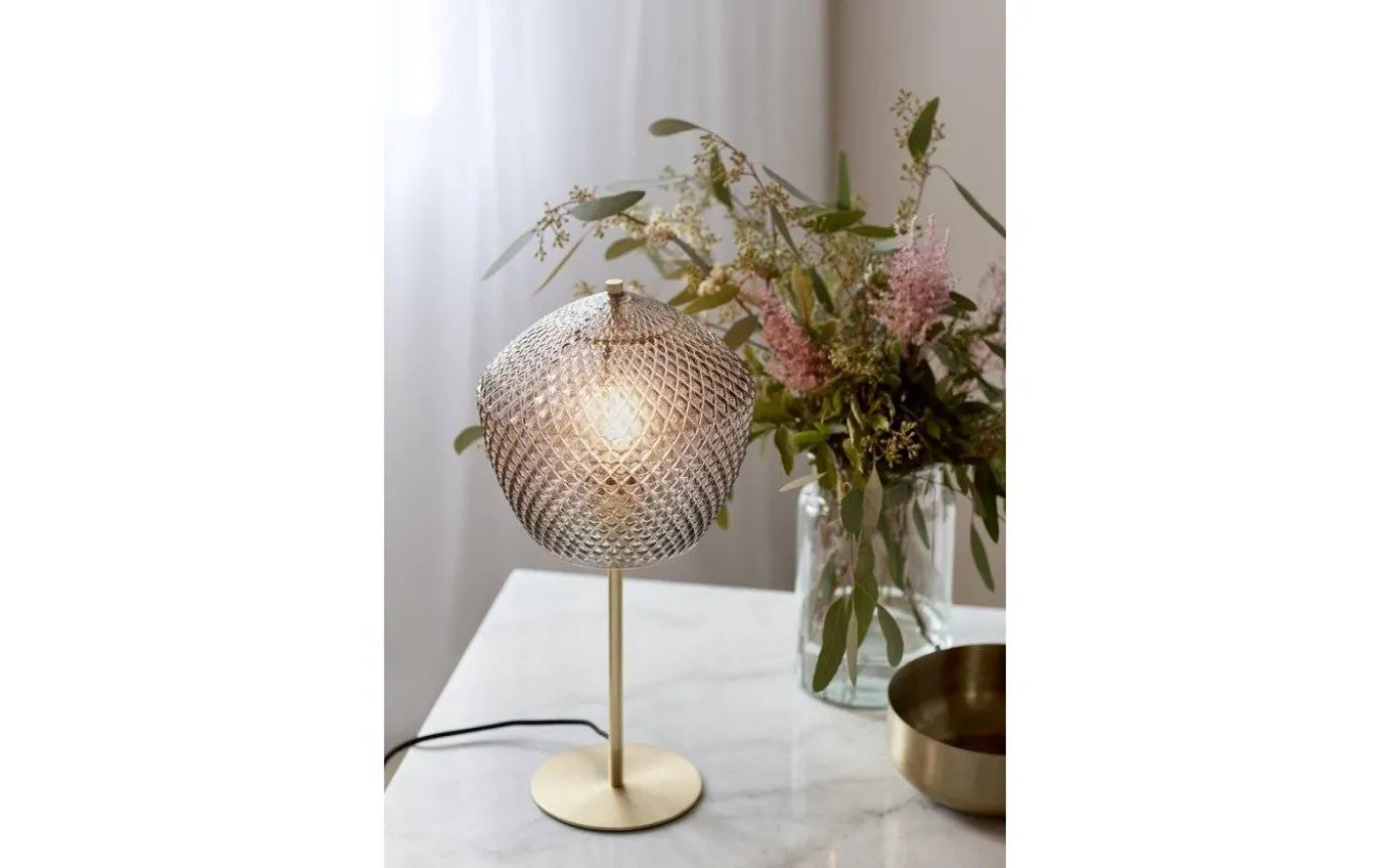 Bordslampan Orbiform utstrålar exklusivitet och glamour. Glaskulan har ett vackert diamantmönster som ger en fantastisk ljuseffekt i rummet. Bordslampan bidrar till en elegant atmosfär och behaglig stämning.