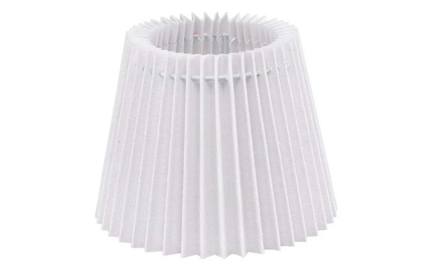 Nody lampskärm från Oriva är en veckad lampskärm i PVC. Lampskärmen har klofäste som fäst på en klotformad ljuskälla.