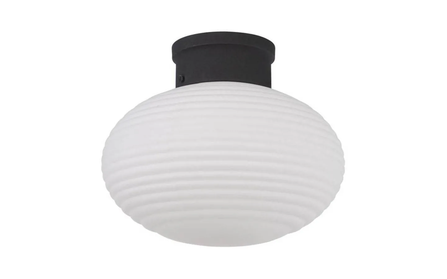 Nova fönsterlampa från Oriva har en stomme i svart metall kombinerat med ett räfflat opalt glas. Ljuskälla köpes separat, se passande förslag under tillbehör.