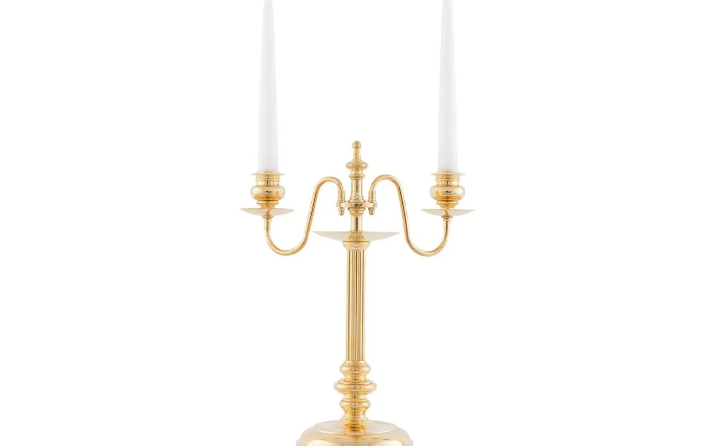 En klassisk mässingskandelaber där ljusarmshållaren har tolv hål och armarna går att flytta runt så att det blir en två-, tre-, fyra- eller sexarmad kandelaber. Framtagen efter en äldre förlaga till Frimurarna som ceremonikandelaber. Polerad mässing 40×25 cm (utan ljus)