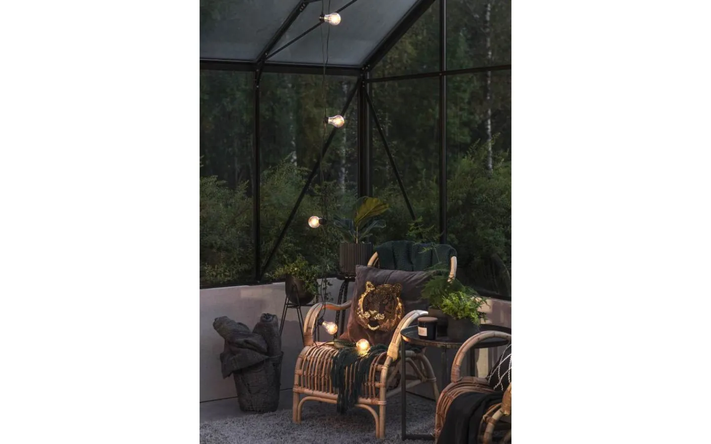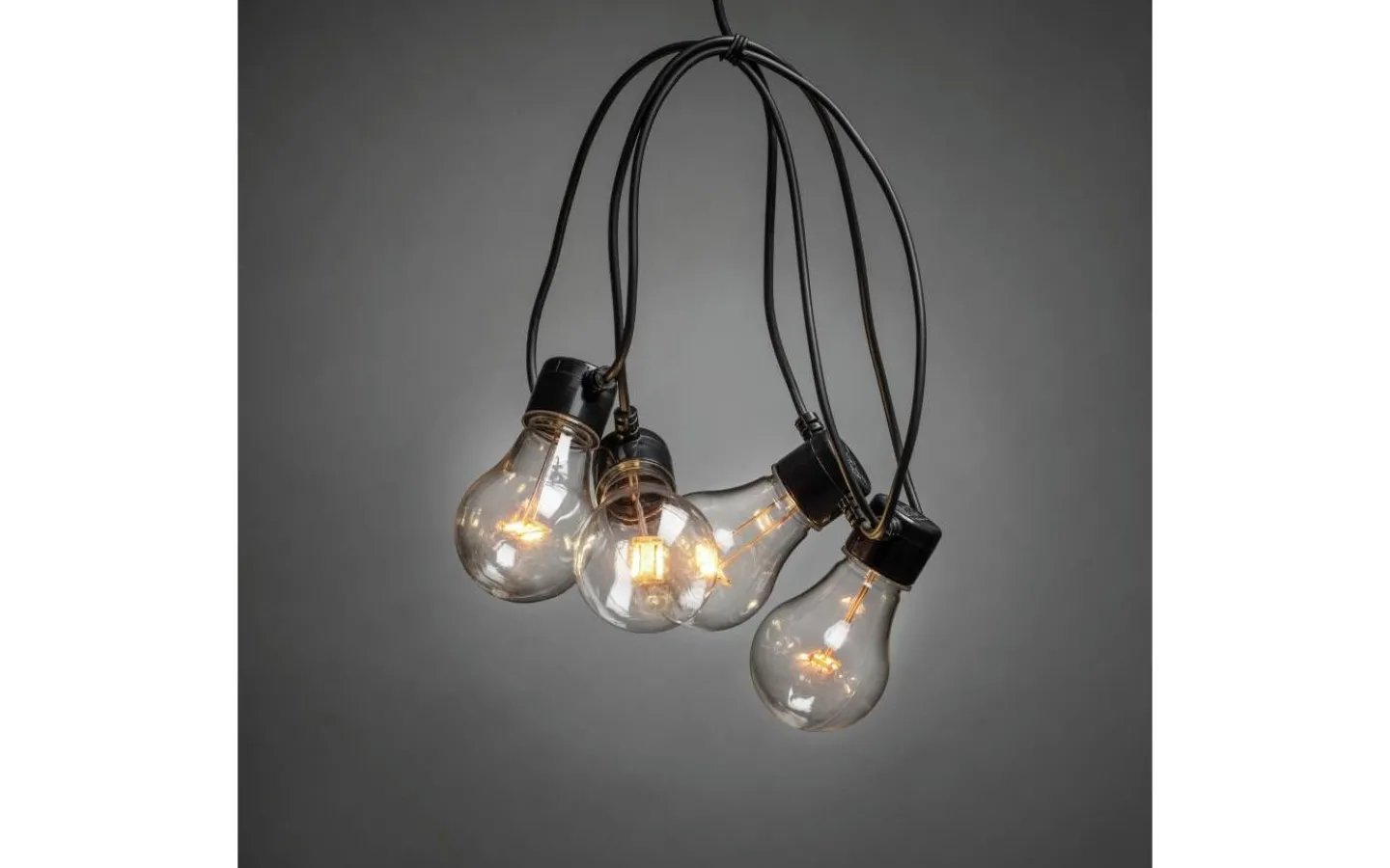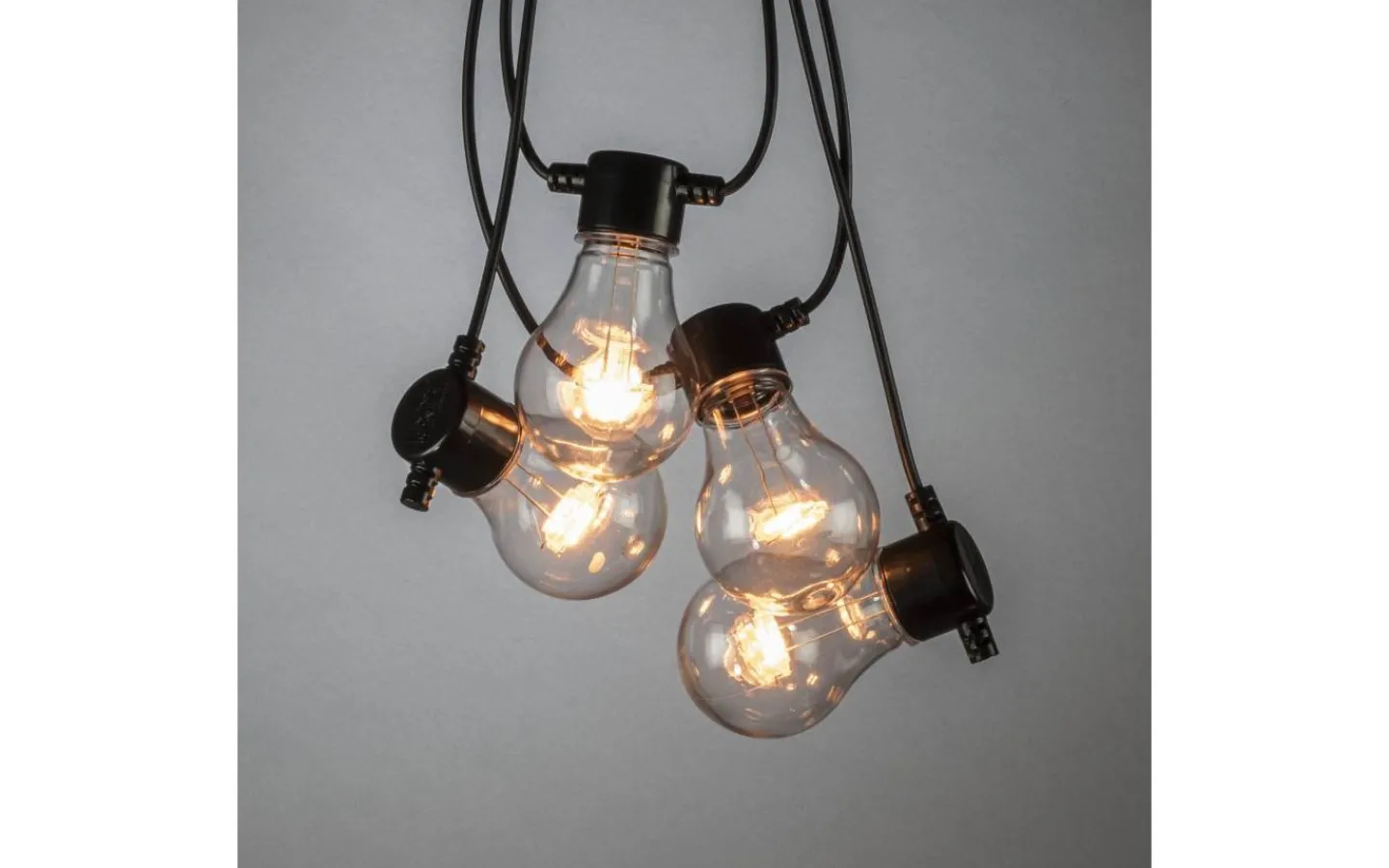 Skapa magiska stunder i trädgården, på uteplatsen eller balkongen med denna stilrena partyslinga. Den sprider ett varmt, inbjudande sken som sätter stämningen för både vardagskvällar och festliga tillfällen. Ljusslingan är tålig och väderbeständig, designad för att klara utomhusmiljöer året runt.