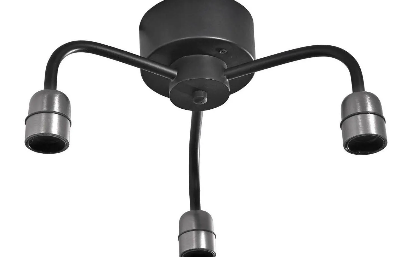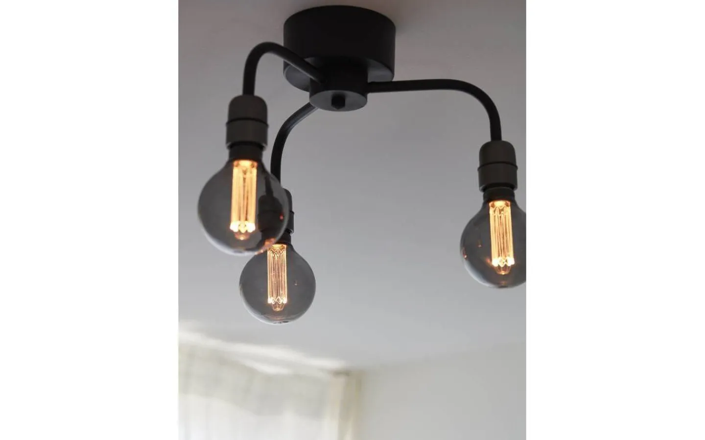 Loft plafond från PR Home är en 3-armad plafond av metall i en minimalistisk design med industriell känsla. Stommen är matt svart med en delbar lamphållare i en mörkgrå finish. Den delbara lamphållaren gör att man enkelt själv kan väl om man endast vill använda med en dekorativ ljuskälla eller kombinera med en toppringsskärm med E27-ringfäste.