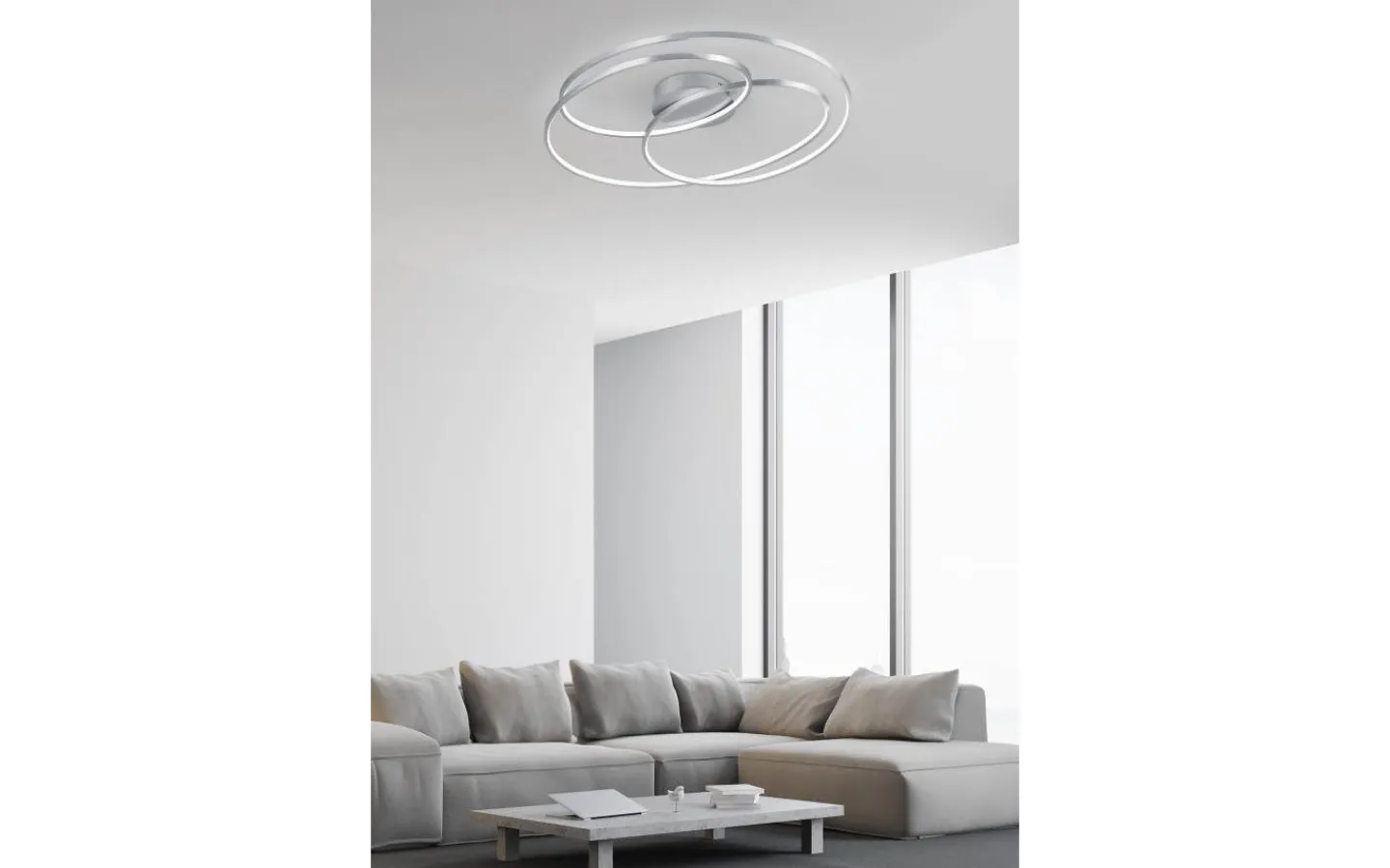 En höjdpunkt i alla vardagsrum! Taklampan GALE skapar stämningsfulla ljuseffekter. Med sin moderna och ovanliga design ger lampan ditt rum en individuell charm som kommer att imponera. I vardagsrummet, hallen eller ovanför matbordet, oavsett var, GALE erbjuder den där speciella touchen överallt! Armaturen har också en SWITCH-dimmer, vilket gör att ljusstyrkan kan justeras från 100 % till 50 % och 25 % med en vanlig ljusströmbrytare. Taklampan har en höjd på 14,5 cm och en längd på 80 cm. Tack vare den matta nickelfärgade designen kan lampan kombineras med många inredningsstilar. Dessutom har armaturerna modern LED-teknik, vilket står för hög ljuskvalitet. LED-ljuskällor kännetecknas av lång livslängd och låg värmeutveckling. Ljuskälla: inklusive 1x SMD LED, 50W · 1x 7000lm, 3000K. Extra information: Takmontering, IP20, Ej dimbar, Dimbar via strömbrytare