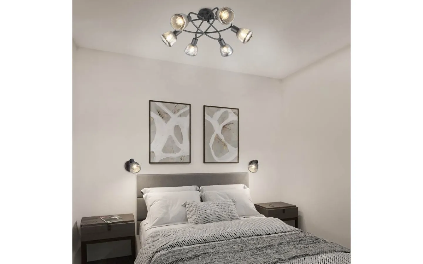 Spotlighterna i TARIFA-serien är ett perfekt exempel på retrochic och är ett absolut måste! Deras trendiga design gör dem till en höjdpunkt på alla väggar och tak, medan deras mysiga ljus och fascinerande ljuseffekter skapar en inbjudande atmosfär. Den mattsvarta metallen och det förkromade glaset ger ditt vardagsrum en sofistikerad touch. För modern och pålitlig belysning rekommenderas en LED-lampa. Den erbjuder hög ljuskvalitet, är mångsidig och övertygar med en jämn belysning. Dess långa livslängd och låga värmeutveckling gör den till det perfekta valet för en mängd olika användningsområden. Ljuskälla: exklusiv 6x E14 · max. 10W. Extra information: Takmontering, IP20, Lampa(or) ingår ej