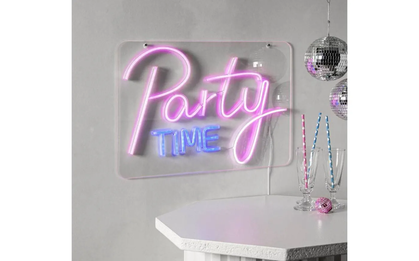Plexy Neonskylt Party Time 48cm Rosa/Blå