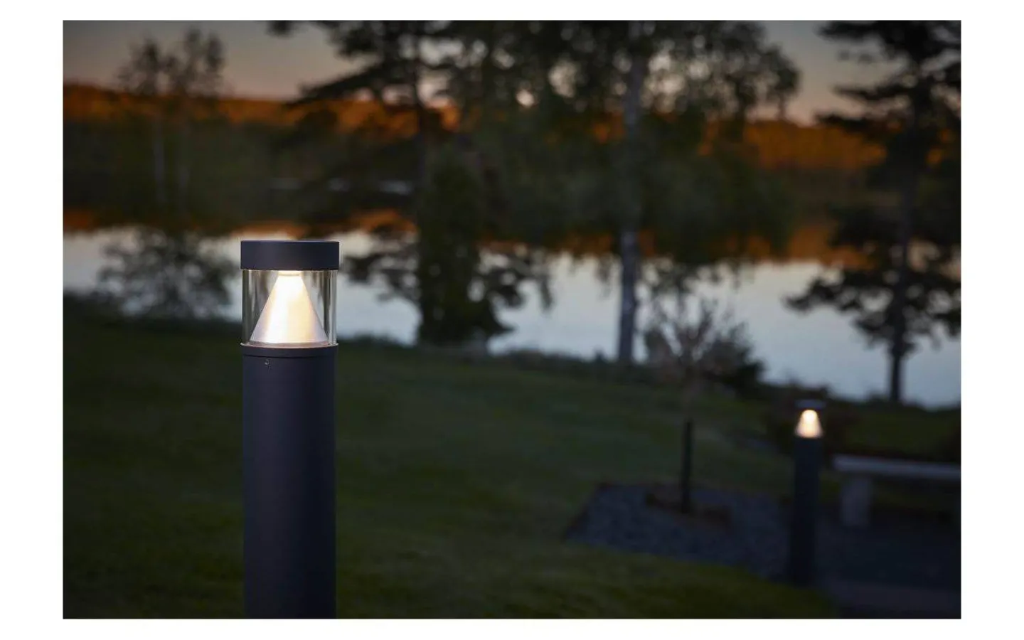 Cylindrisk pollare i IP65-utförande. Armaturen ger en effektfull väl avbländad rundstrålande och nedåtriktad ljusbild med en spridning på 150° för belysning av trädgårdar, gångvägar och trädäck. Armaturhus av strängsprutad aluminium, anodiserad och pulverlackerad för att tåla nordiskt utomhusklimat. Matt sandblästrad finish. Inbyggt drivdon med separat vidarekopplingsbar plint för enkel 230V-anslutning. Levereras med ett komplett kit för ingjutning i betong.