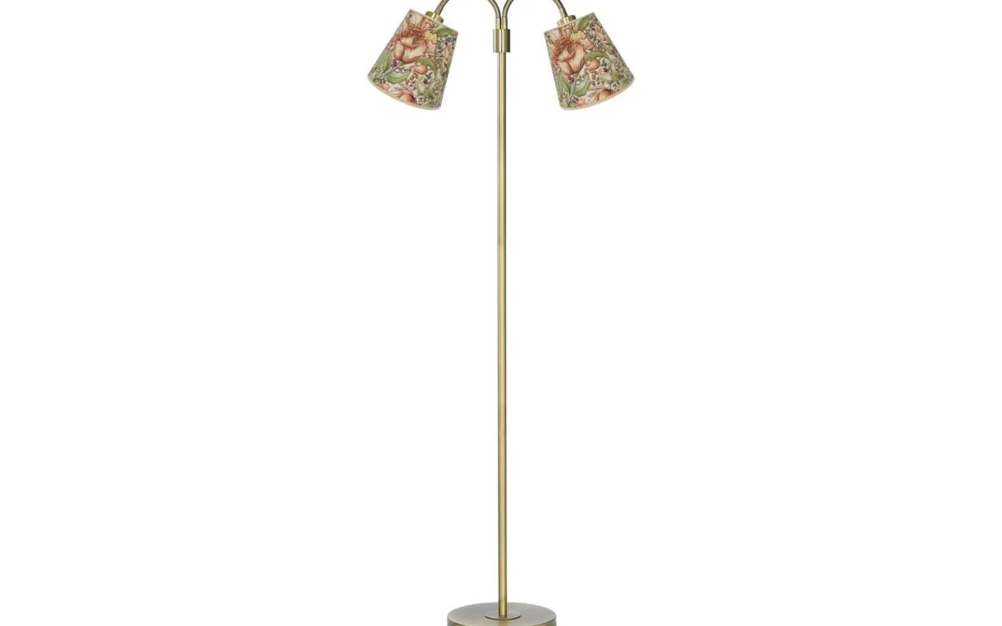Amy golvlampa från välkända PR Home är en enkel och stilren golvlampa av metall med två mönstrade lampskärmar i textil. Golvlampan har två flexibla armar som kan justeras i önskat läge och är försedd med enskilda strömbrytare på toppen av vardera arm. Ljuskällor köpes separat, se passande förslag under tillbehör.
