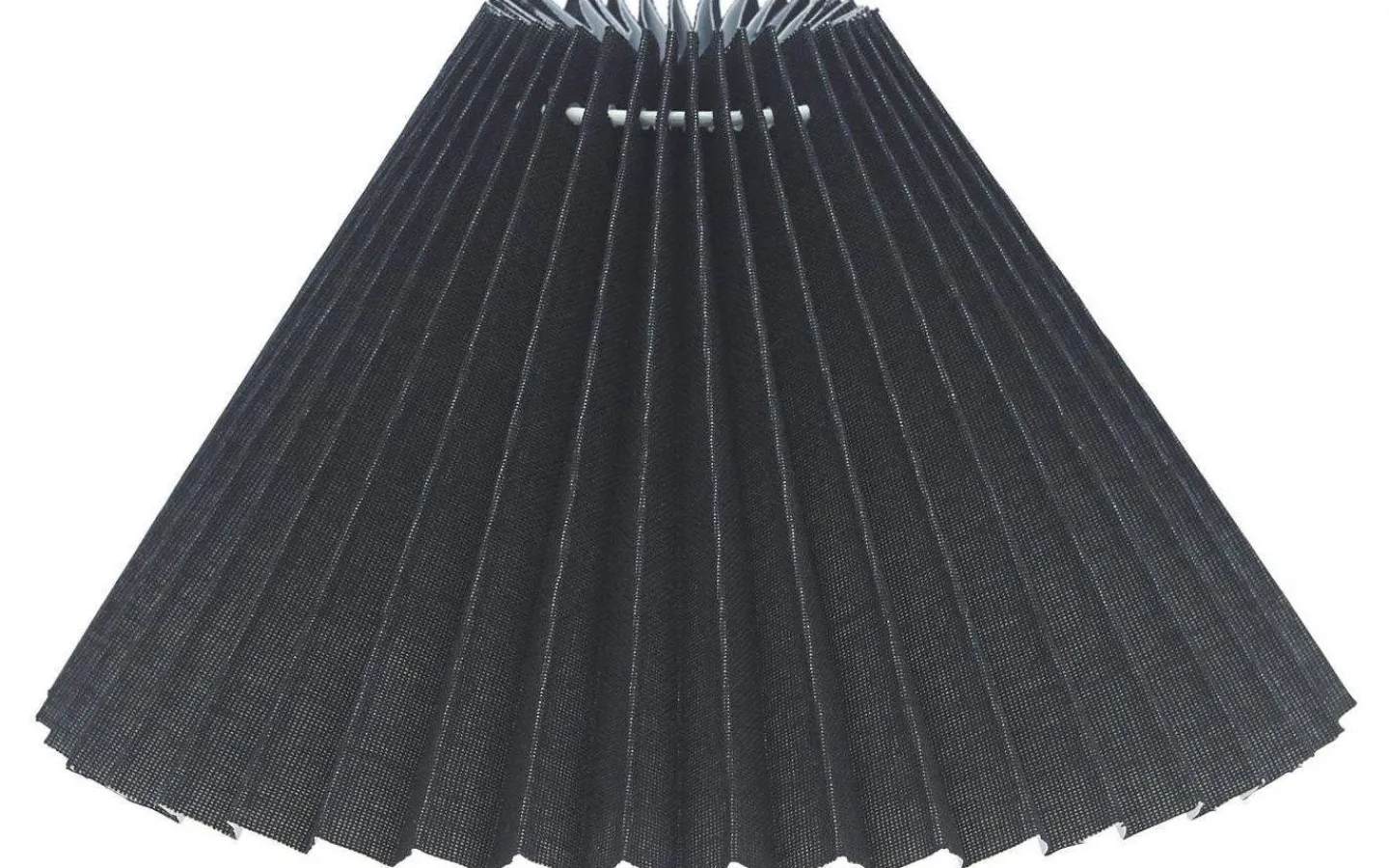 Astrid lampskärm från PR Home är en veckad skärm i tyg med linnestruktur. Skärmen har en hårt laminerad ljus insida som ger ett vackert sken.