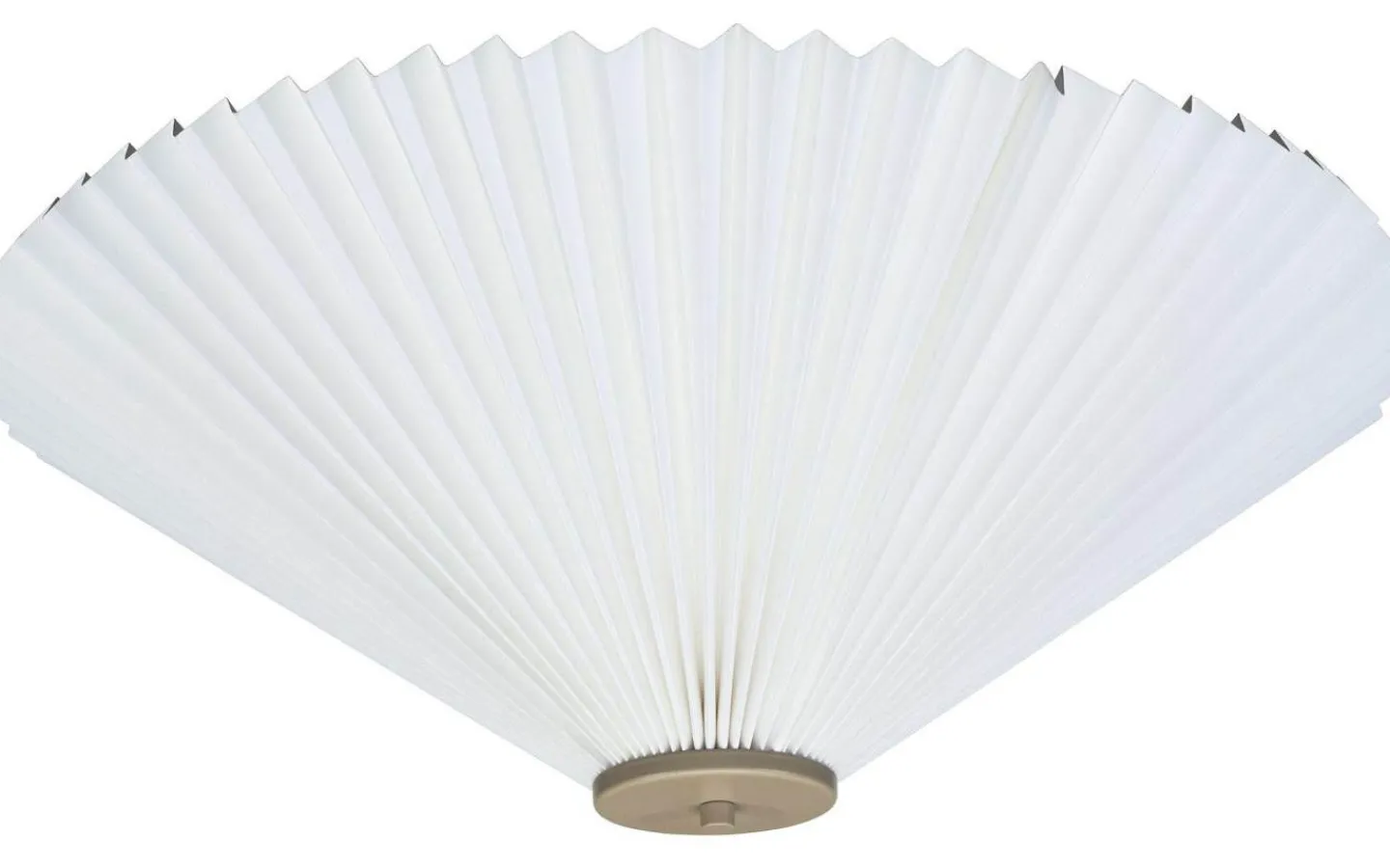 Dora plafond från välkända PR Home är en enkel och stilfull plafond i veckad vit papp med en dekorativ metallknopp i en beigefärgad finish.