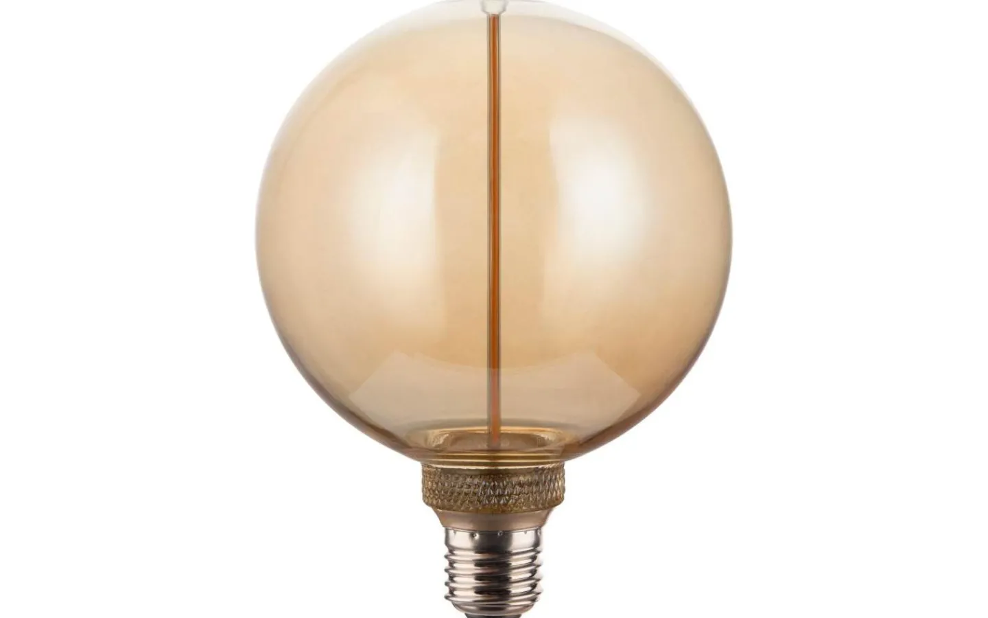 Dekorativ LED-ljuskälla i futuristisk design med amberfärgat glas. Ljuskällan är dimbar och har E27-sockel.