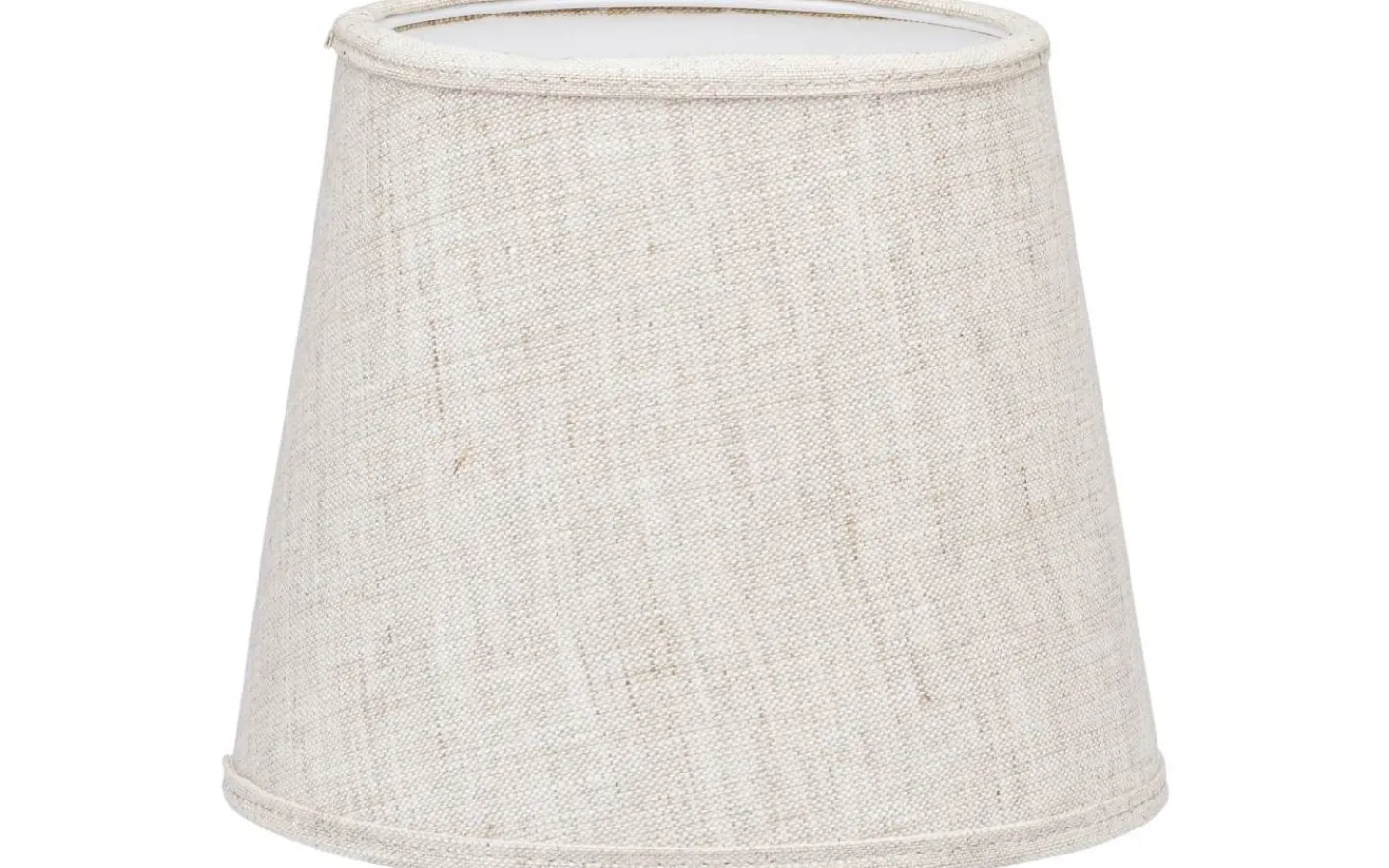 Mia lampskärm från PR Home är tillverkad i linnetyg och har ett klofäste som passar på en klotformad ljuskälla. Lampskärmen har en vit insida och kantband i ovan och underkant i samma tyg som skärmen.