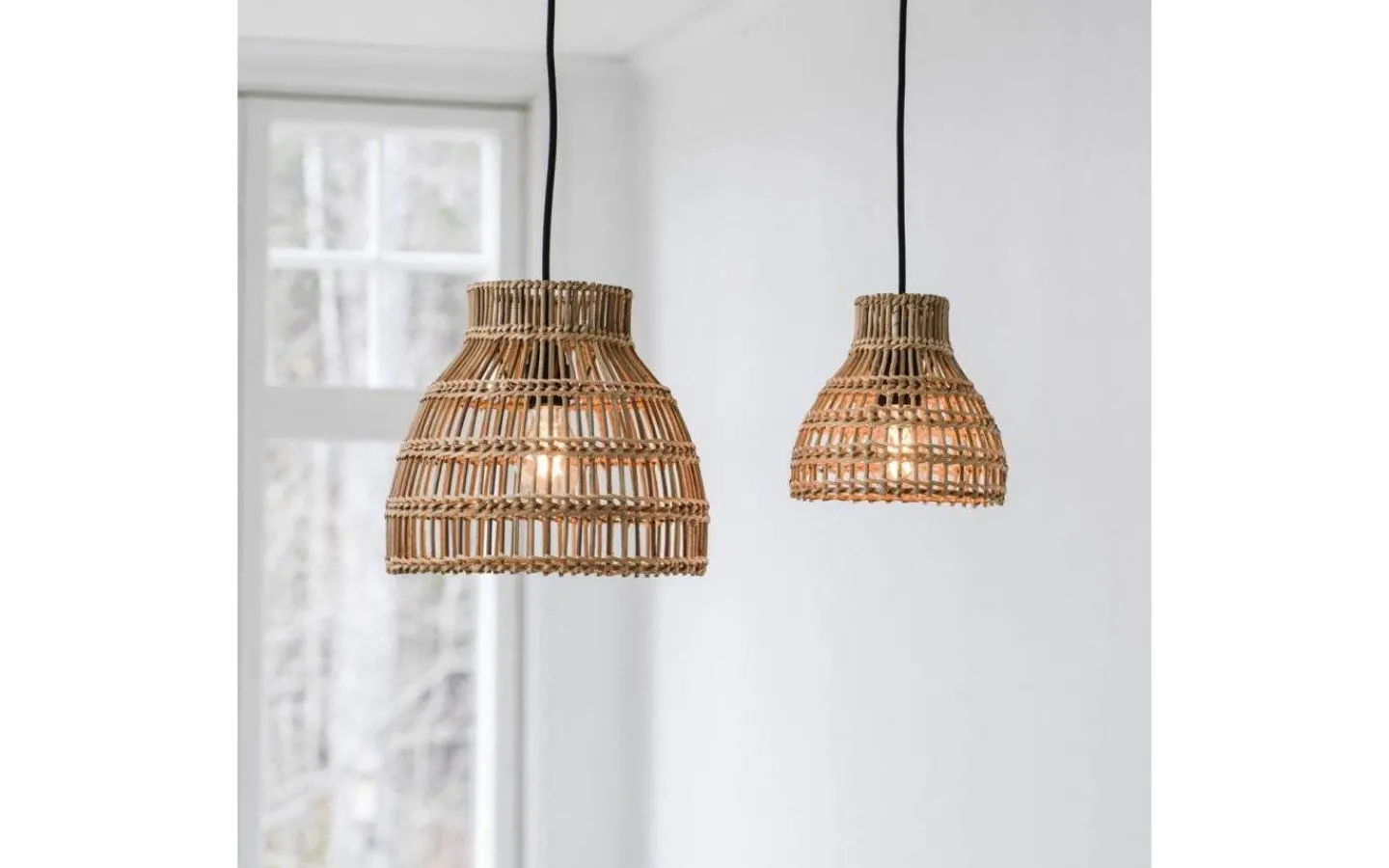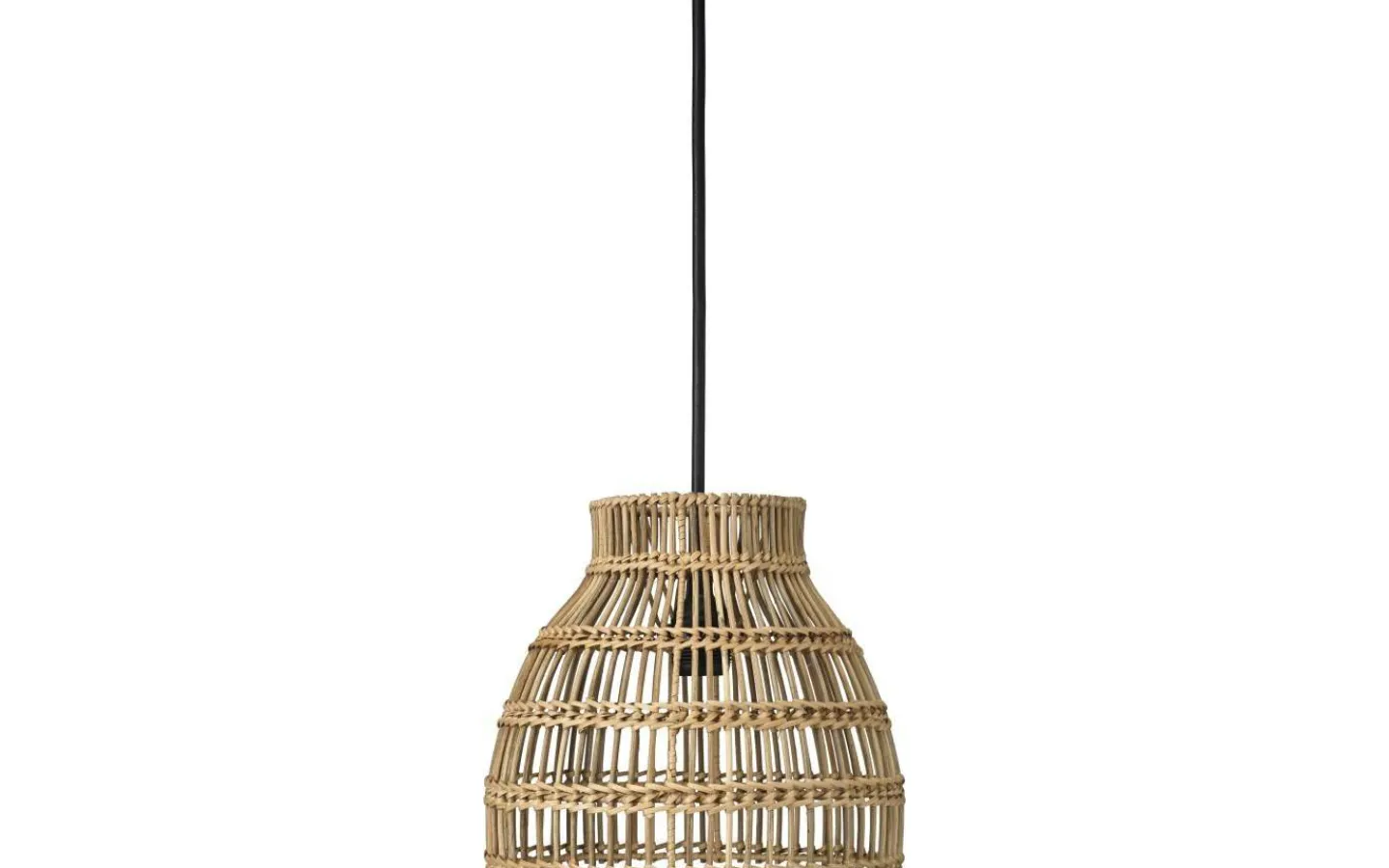 Sarah taklampa från PR Home har en skärm i flätad rotting. Skärmen med dess unika form och flätning silar ljuset och skapar ett vackert skuggspel. Kan användas som hängande i ett fönster eller över tex en köksbänk.