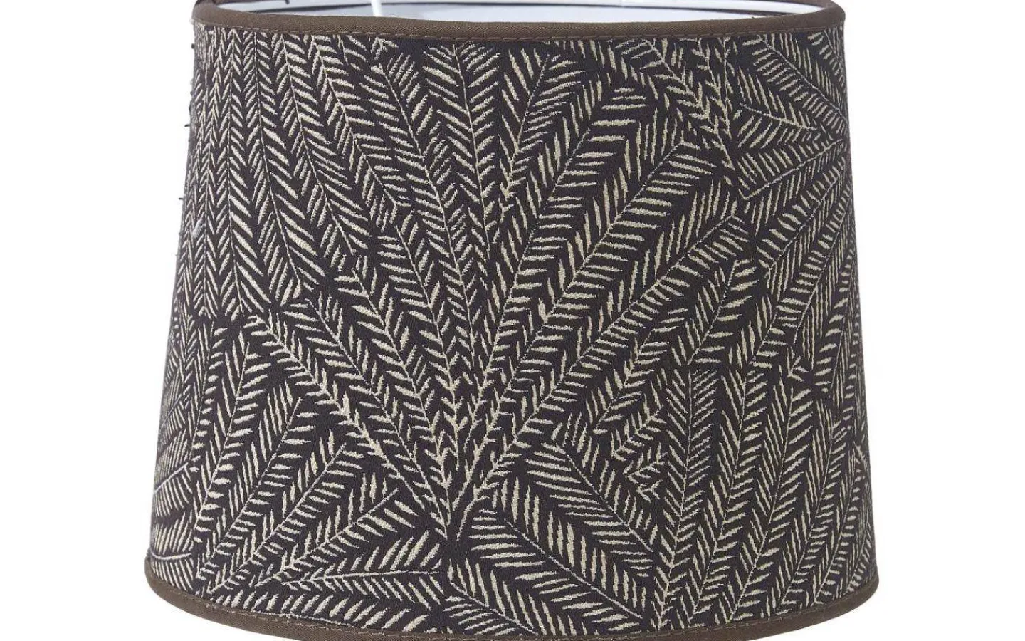 Sofia lampskärm från PR Home är tillverkad i ett jacquardvävt tyg. Bladverket i en kontrastfärg gör att tyget får ett fint djup vilket skapar en lyxig känsla. Skärmen har en ljus insida och matchande kantband. Lampskärmen har E27-ringfäste.