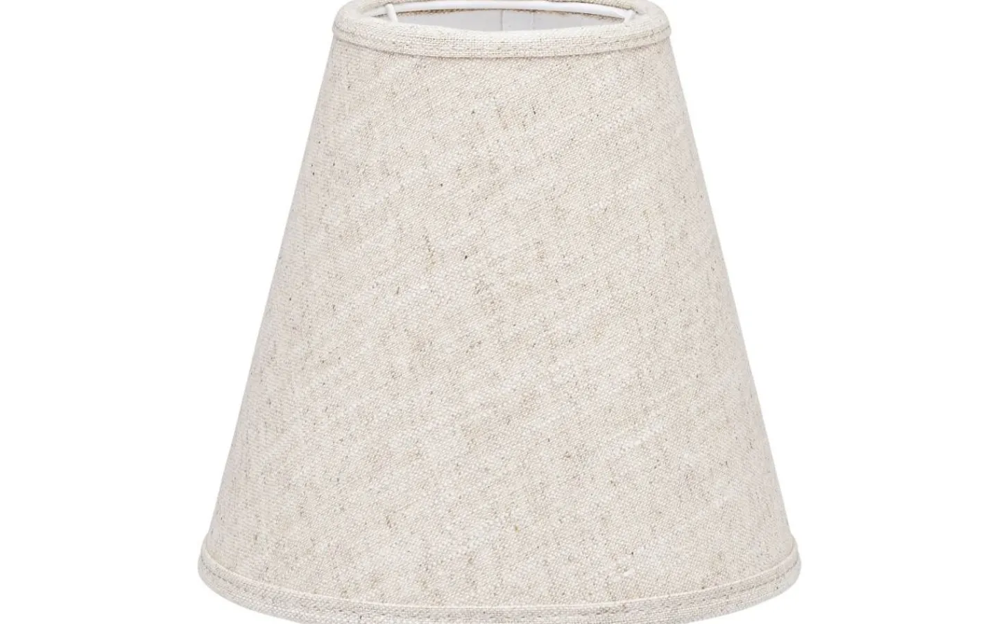 Toppringsskärmen med ett E14-ringfäste från PR Home. Denna lampskärm är tillverkad i linnetyg mede vit insida och matchande kantband i ovan-/ och underkant.